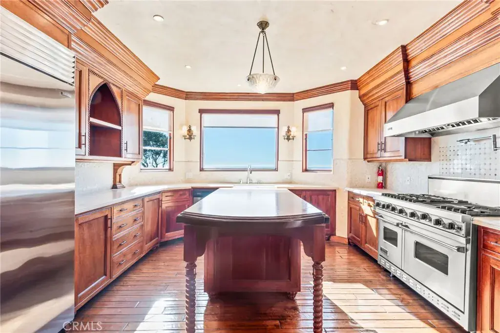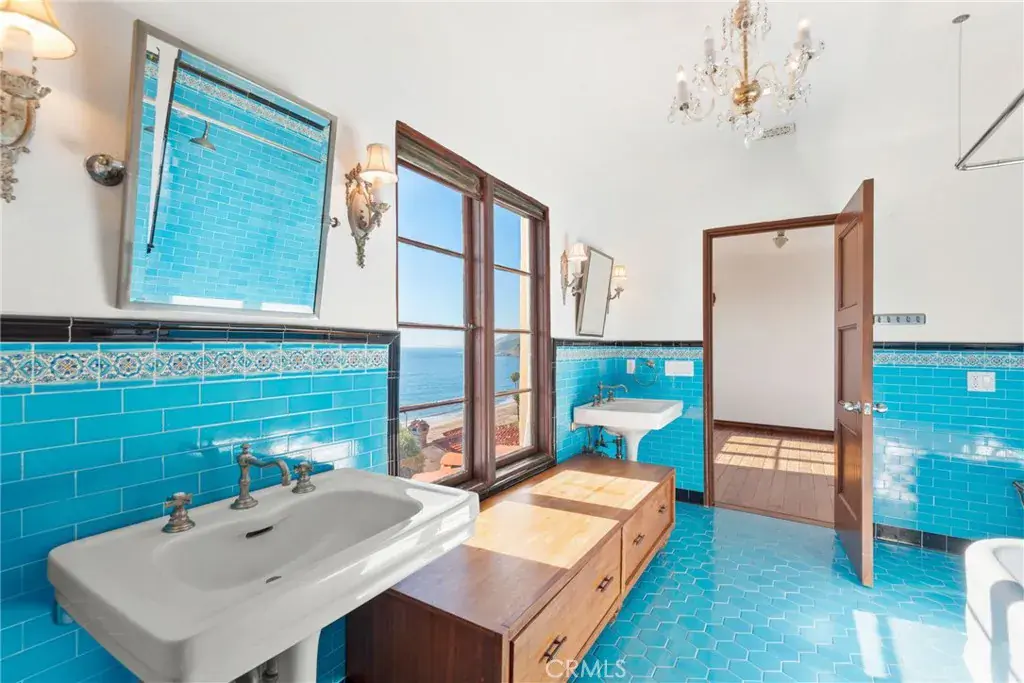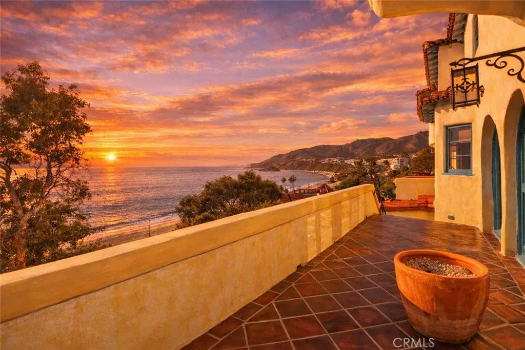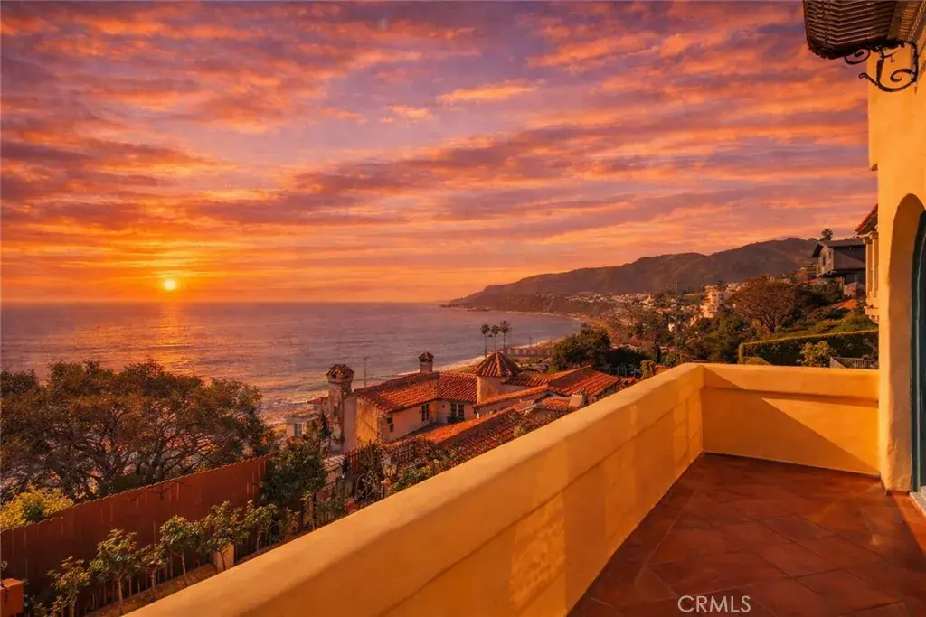 Perched on the hillside of Pacific Palisades overlooking the ocean, this 3,998 sqft residence is a stunning example of 1920s architecture. The home offers incredible ocean and coastline views, allowing you to enjoy a short trip to the beach or simply listen to the waves at night. The villa is defined by its truly unique architectural details, featuring intricate stained glass windows, classic arched doorways, and exposed wood beams that capture the character of the era.