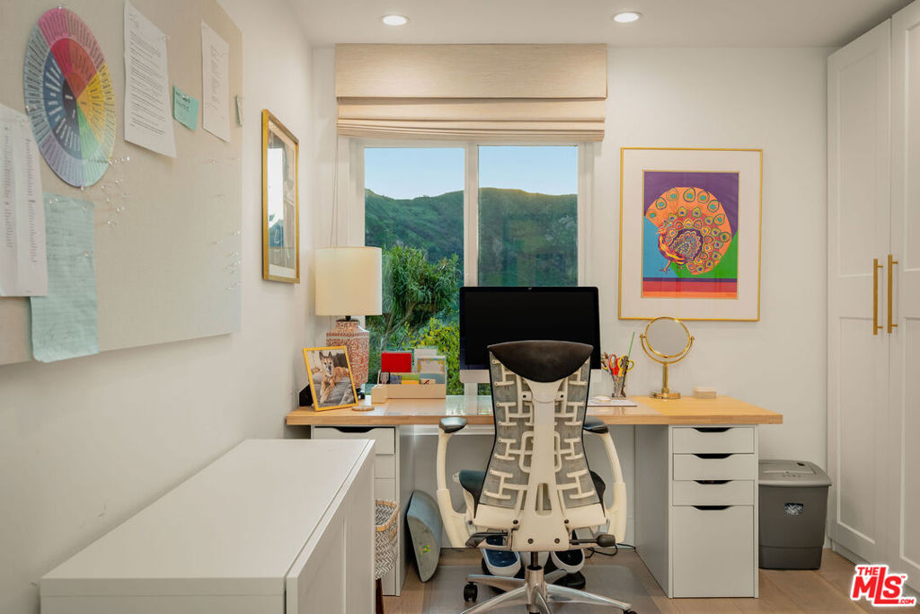 Floating above the canyon with sweeping, unobstructed views, this designer-redone corner townhouse captures what people come to the Palisades Highlands for in the first place: light, space, and a sense of calm that’s hard to replicate anywhere else on the Westside. From the moment you step in, walls of glass, and an open living space pulls your eye straight out to the horizon. The living, dining, and kitchen areas connect effortlessly, anchored by a statement fireplace and finished in crisp whites, warm textures, and refined gold accents. The kitchen is both polished and practical, built with top-tier materials and a layout that actually works for daily life. Upstairs, the primary suite feels tucked away and quiet, with a sunlit reading nook that looks out over the canyon, one of those spots you end up using more than you expect. A generous walk-in closet and a thoughtfully designed ensuite bath complete the space. The lower level adds flexibility without compromise. A dramatic glass entry leads to a large den/media room or guest space, which can easily be re-converted into a second primary bedroom. It opens to a secluded deck that feels removed, private, and ideal for entertaining or unwinding at the end of the day. An office and full bath accompany the guest space on the lower level. Beyond the home itself, the Highlands are clearly on the rise again. Cafe Vida has announced its return just down the hill in the Highlands shopping center, Gelson’s is set to rebuild, and Caruso’s Palisades Village is expected back this August, bringing back the lifestyle and convenience that define the area. The HOA includes a pool, spa, gym, sauna, two tennis courts, and fire insurance. This is a home for someone who wants views, design, and quiet, without giving up access to the best of the Palisades.