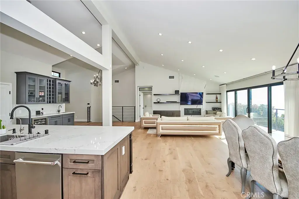 Fully furnished w. high end furniture and appliance! Completely rebuild in 2021. Magnificent renovation in the most desirable Pacific Palisades Castellammare Mesa location. Stunning finishes to highlight a spectacular view of the ocean, coastline, hillside, Sunset Mesa and the Santa Monica Mountains. Impressive front curb appeal with exterior brick, plaster and board and batten finishes, mature privacy hedges, and designer double door entry that opens to a breath taking enormous living space with soaring high architectural ceilings over entire kitchen, dining, and living area, all looking out to a full length balcony, custom railing, VIEW and back yard. Chef’s kitchen with complete upscale appliance package, massive cook’s island, and Butler’s Pantry all with extensive use of beautiful Quartz, and Marble! Dream master suite with view, spacious custom-built walk-in closet, 2nd closet and built-in cabinetry, gorgeous bath with, standing tub, oversized shower, and exquisite marble counters and tiles!! Three additional bedroom suites with luxurious baths as well, with matching lighting, custom mirrors and top of the line faucets. Custom designer railing on staircase leading down to an open entertainment room looking out to the uniquely landscaped backyard with huge patio and massive deck! From the front to the back and from the top to the bottom, this is a picture perfect package that stands out from all the rest!