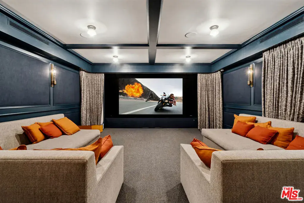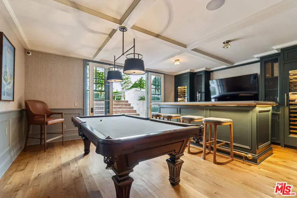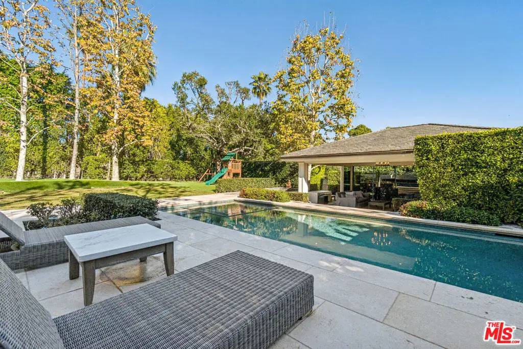 Arguably one of the most special homes in the Huntington Palisades, this property offers six (6) en-suite Bedrooms and a highly favorable floor plan. Spanning three levels, the home features beautiful public rooms with wonderful ceiling heights throughout. Set on an approximately 25,000-square-foot lot, the property includes all the exterior amenities expected at this level. A complete to-the-studs remodel in 2017 introduced a New Kitchen, Movie Theater, Outdoor Dining area, and all new Flooring. The very private grounds are surrounded by mature, lush landscaping on three sides. A large covered patio leads to a built-in BBQ area – perfect for watching games on screen or enjoying the grassy yard, putting green, pool / spa, cabana, and cold plunge. Outdoor activities are highlighted by a sunken sports court, ready for pickleball, soccer, or basketball ! Ideally located close to the park, village, schools, and the Ocean.