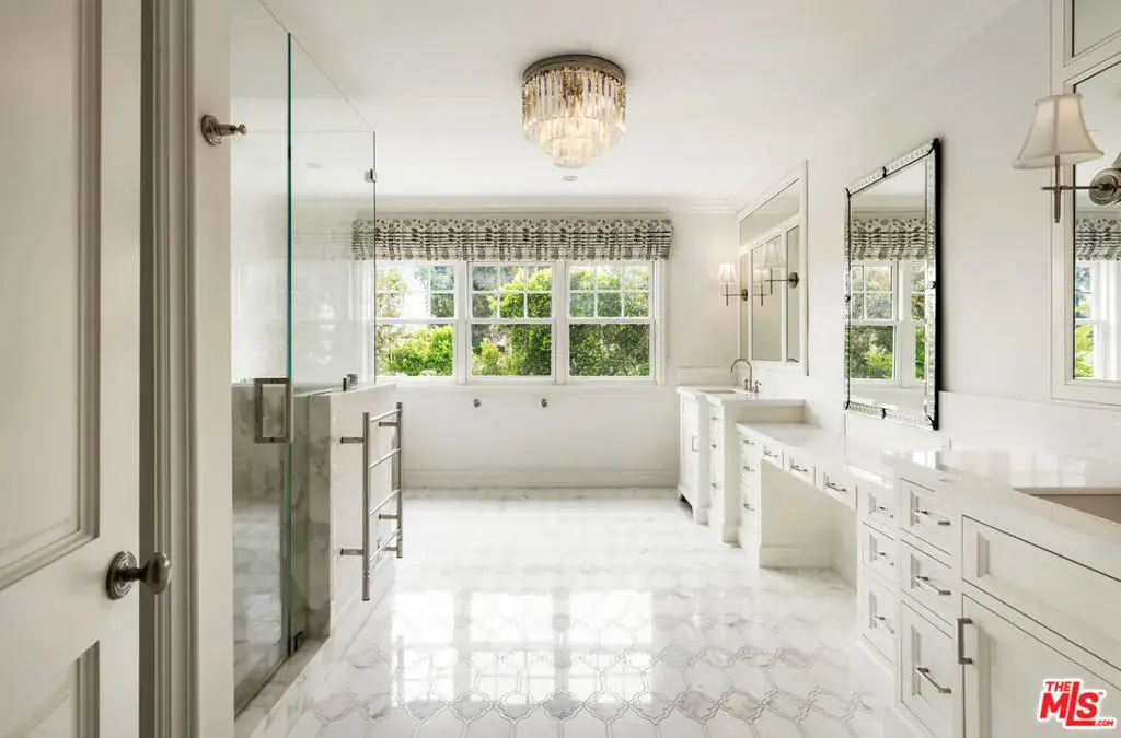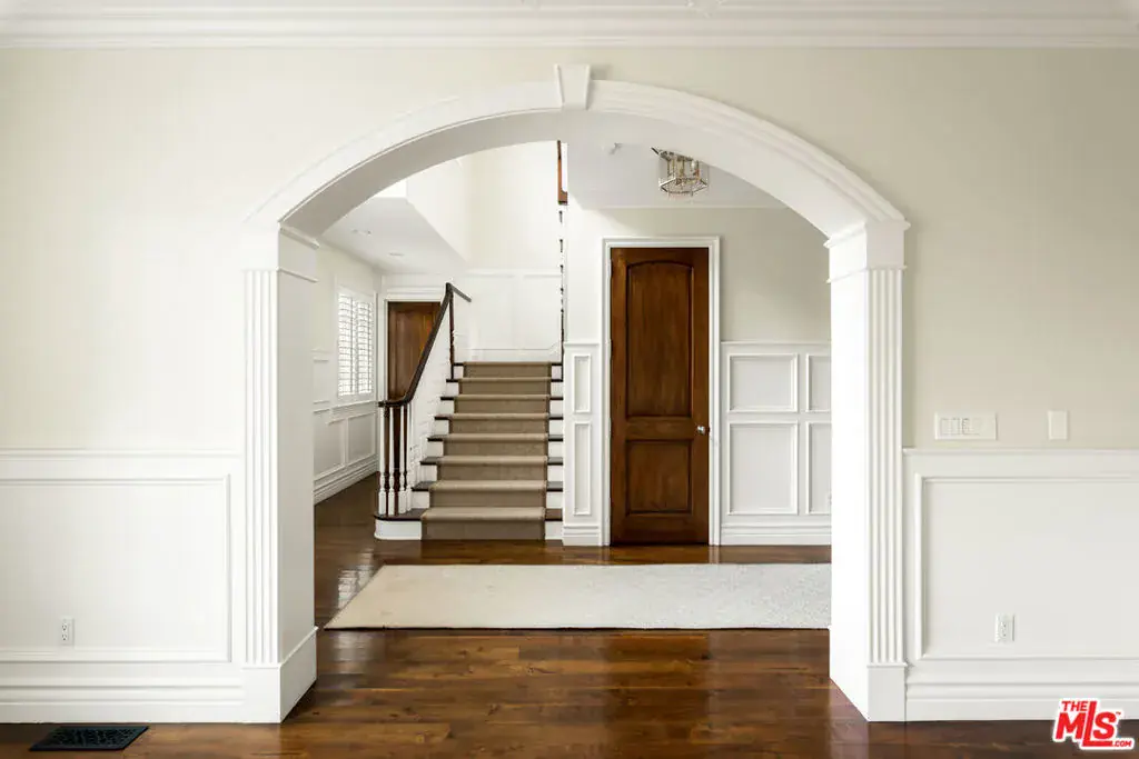 Situated on an untouched and preserved block in the Huntington, this prime corner lot boasts a distinguished New England Traditional that blends timeless charm with modern-day comfort. The home showcases exceptional craftsmanship, a thoughtful layout, and refined architectural details throughout. The main level features lofty ceilings, rich walnut floors, and expansive, light-filled living spaces, including formal living and dining rooms, a generous family room, private office, two powder rooms, dual staircases, and a temperature-controlled wine cellar. The modern chef’s kitchen is equipped with a La Cornue range, Sub-Zero refrigeration, and an oversized center island, opening directly to the main living area. Upstairs, four secondary bedrooms complement a luxurious primary suite with vaulted ceilings, a fireplace, sunlit sitting room or office, private gym, dual walk-in closets, and a marble bath with double vanities. French doors open to a beautifully landscaped backyard with a trellis-covered patio, lush lawn, sparkling pool and spa, and built-in BBQ. Designed for both relaxation and entertaining, this exceptional outdoor setting completes a home that truly embodies timeless California living in one of the most desirable neighborhoods of the Pacific Palisades.