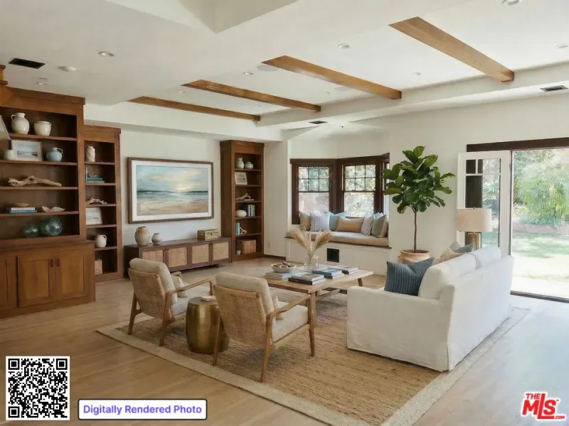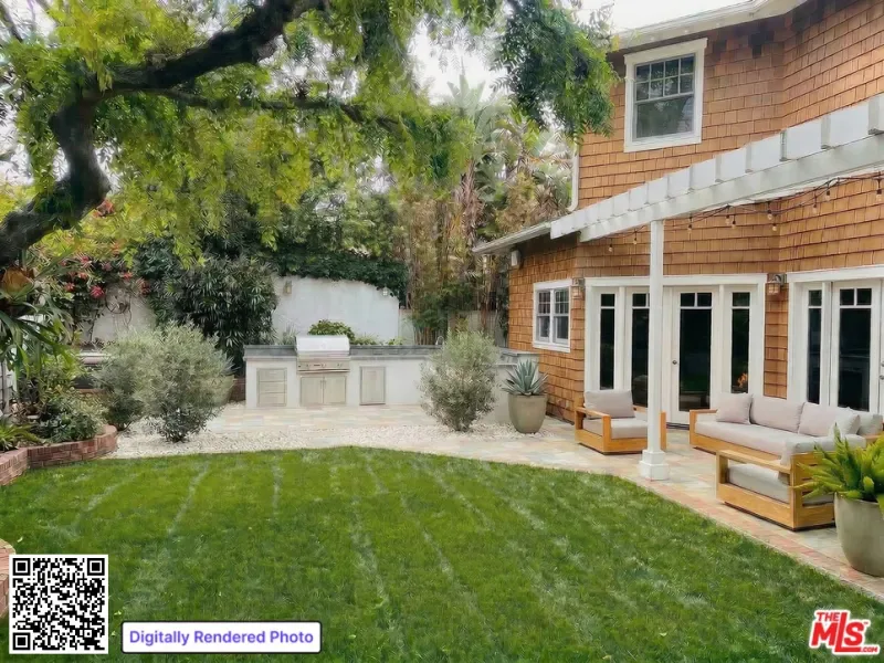 Character Craftsman Home – Opportunity to Customize. For a limited time, a buyer has the opportunity to customize the existing home through thoughtful renovations and upgrades to their liking. A large lot offers possibilities for expansion, adding a pool, conversion to an ADU and more. This exceptional Craftsman home blends timeless character and refined detailing in the coveted neighborhood of El Medio Bluffs. Experience coastal living on an untouched block. An intact sanctuary where existing homes and established tree-lined streets stand symbolic in the Pacific Palisades. The home showcases quality materials and craftsmanship. Upon entry guests experience a stately oak staircase opening to double-height ceilings that create voluminous scale. Thoughtfully placed skylights create abundant natural light, blending the open-concept living area with defined spaces. The main level showcases a Chef’s kitchen with custom cabinets, an oversized island, farm sink, Wolf oven and range, wine fridge, a desk area, and beautiful green-granite countertops. A dual set of French doors opens to the rear yard where an expansive patio with a built-in BBQ is ideal for al fresco dining and entertaining. The living room features architectural detailing with wood-paneled walls and shelving, a beamed ceiling, built-in bay window bench, central fireplace, and transitions to the formal dining area with large French doors that open to an outdoor sitting area with a water feature. An additional first floor guest bedroom or den with an ensuite bathroom, a laundry room, a half bath, and 2-car garage with storage complete the space. Upstairs, the primary suite offers a private retreat with a fireplace, a cedar-lined walk-in closet, an outdoor patio overlooking the lush backyard, and an attached spa-like bath with a dual vanity, rain shower, separate soaking tub and fireplace. Two additional guest bedrooms both with attached baths complete the upper level. The serene backyard is a highly sought-after setting, featuring a babbling-brook waterfall, a small pond, mature trees and landscaping that includes: Red maple, lemon, and pomegranate trees, with rosemary, roses and ferns. A small rec house located at the rear of the property adds an additional 300 sqft. The structure includes a kitchenette, full bath, living area with corner fireplace and a stone patio. A perfect escape for a separate work-from-home office, gym, or additional guest room or investigate conversion to an ADU. Ideally located moments from Pali High School, the Palisades Village, renowned private schools, recently opened local businesses, beach access, and hiking trails, the Pacific Palisades community is poised to enter into its next chapter more beautiful than ever. This is an opportunity to customize the existing home and allow a buyer to finish the renovation themselves; the seller will consider an ‘as-is’ sale now. (The sqft, bed, and bath count in the listing does not include the guest house). The home has been remediated and received Clearance Reports for Surfaces/Air, Asbestos and Lead, as well as a Termite Fumigation Clearance report. (Note: Photos 1,2,4,5,7,9,11,13,15 have been digitally altered to depict renderings of what may be possible. As per CA law, the original, unaltered image can be viewed next to the digitally altered image).