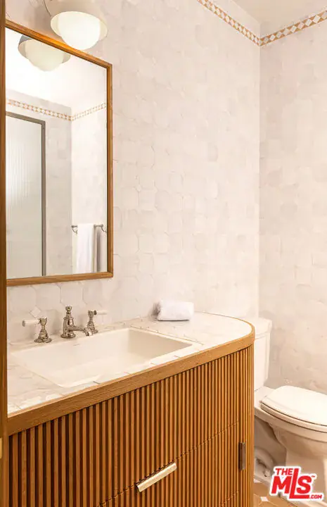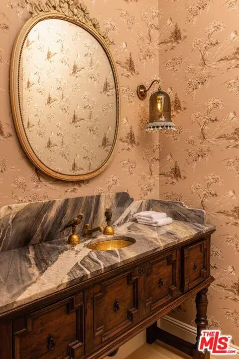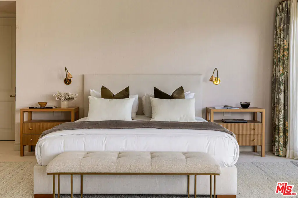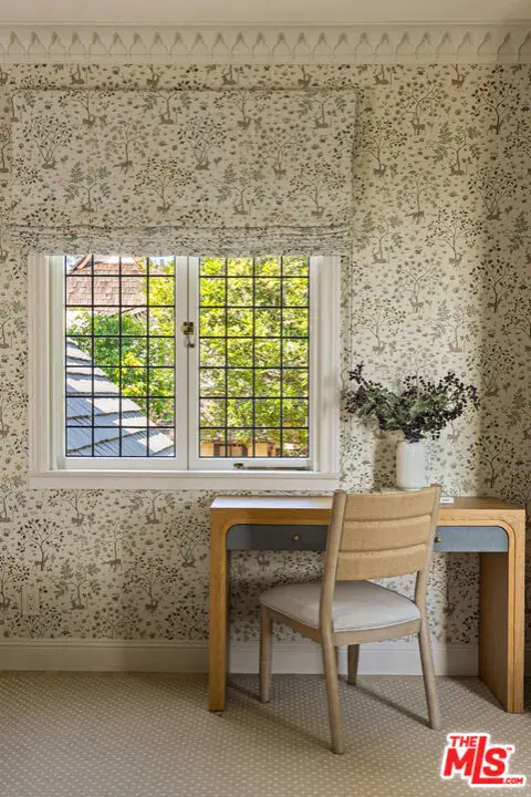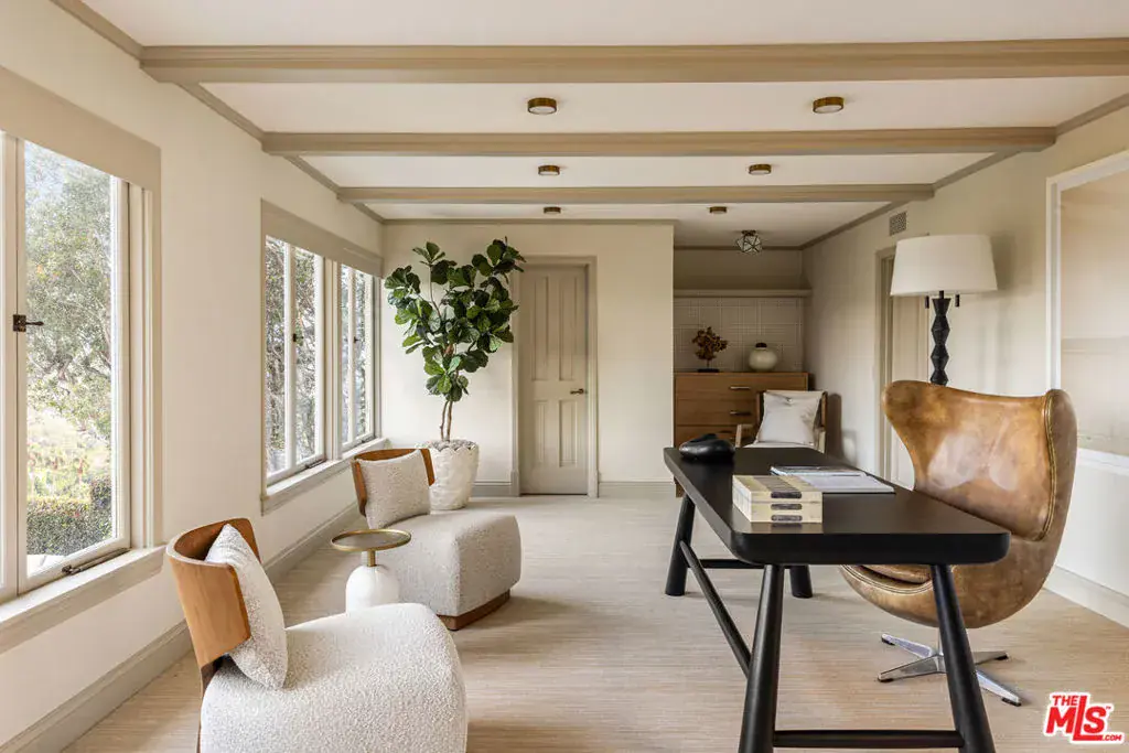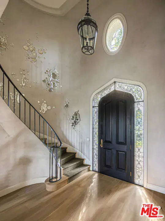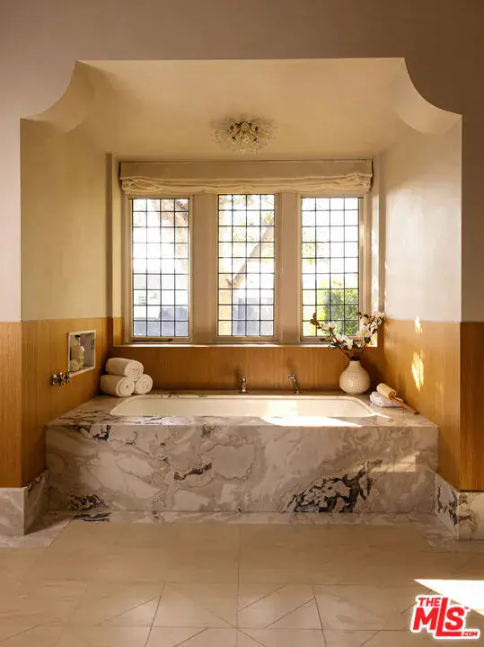 Spectacular gated English estate on coveted Amalfi Drive in the Palisades Riviera. With sweeping ocean, canyon, and country club views, this 5-bedroom, 5.5-bath residence has been reimagined to balance timeless character with modern luxury. Every detail reflects the exquisite renovation, where elegant finishes and authentic charm define the home. A garden arbor and beautiful entry lead to a dramatic two-story foyer. The living room showcases vaulted wood-beam ceilings with woven cane inlay, a limestone fireplace, and leaded glass windows opening to a private view patio. The formal dining room with French doors flows into a gourmet kitchen with a large center island, top-of-the-line appliances, and a sunlit breakfast alcove overlooking the garden. Designed for entertaining, the family room with French doors highlights panoramic views and is fit with a masonry fireplace, custom banquette, and built-in media center. A paneled den with fireplace creates an ideal retreat, while a guest suite, elegant powder room, mudroom, and laundry complete the main level. Upstairs, the primary suite features a fireplace, sitting area, dual closets, and private balcony with breathtaking views. The spa-like bath offers heated stone floors, custom millwork, a ribbed glass steam shower, and a luxurious soaking tub. Two additional en-suite bedrooms, and a playroom with vaulted ceilings complete the second story. A private guest wing with bath and walk-in closet provides flexibility. Venture outside to enjoy beautifully landscaped grounds with mature trees, bluestone patios, a built-in barbecue with entertainment bar, a garden house, and deluxe pool and spa all framed by sweeping vistas. Wide-plank floors, Savant home automation, integrated A/V, Lutron lighting, upgraded systems, and water filtration complete this exceptional home. Just moments from the beach, local shops and restaurants, top-tier schools, Rustic Canyon Park, and Brentwood Country Mart, this one-of-a-kind estate is a truly rare offering for your most discerning clients.
