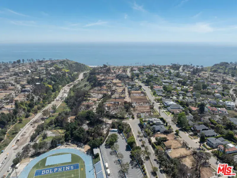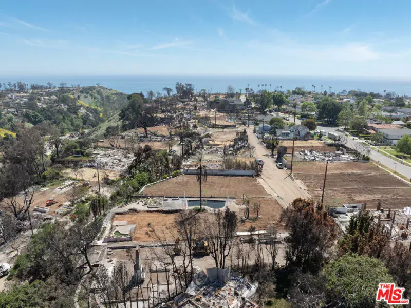 One of the best lots on Erskine. Mostly flat with a finished hillside. This is a 13803 square foot lot with potential to build a beautiful home with ocean and canyon view. House was 3049 sf. Walking distance to the Palisades Village and the beach. The sellers of this property want the buyer to know that the family has been here since 1955 and put 70 years of love and care into the property, only to lose it in the Palisades Fire. The landscape in front with meandering walkways, waterfalls and ponds, was a labor of love weekend after weekend of this family working together over three generations to create what was a beautiful place. The seller is hopeful that whoever buys the property knows that this is a special place. The property has a level entrance on the Bowdoin Alley side where the previous house had two, two car garages with a small studio apartment besides them. At the front of the property on Erskine Dr. side, there is a large, permitted retaining wall halfway up the bank. Below the retaining wall there are terraced landscape walls for planting. To enter the property from Erskine Dr. you walk through a small wrought iron fence on to meandering concrete and stone walkway with an iron handrail following the path. The path has a pond and sitting area midway up that is fed by a manmade waterfall coming from an upper larger pond. The upper pond has a fountain with its own custom rock waterfall and flagstone deck. The water rapids travel underneath a custom arched foot bridge. There are great planting beds along the path and plenty of concrete seating for relaxation and meditation. Above the foot bridge is an interesting, custom brick and stone hardscape with great accents. The path ascends to a concrete patio overlook where you have a great view of Temescal canyon all the way to the ocean.