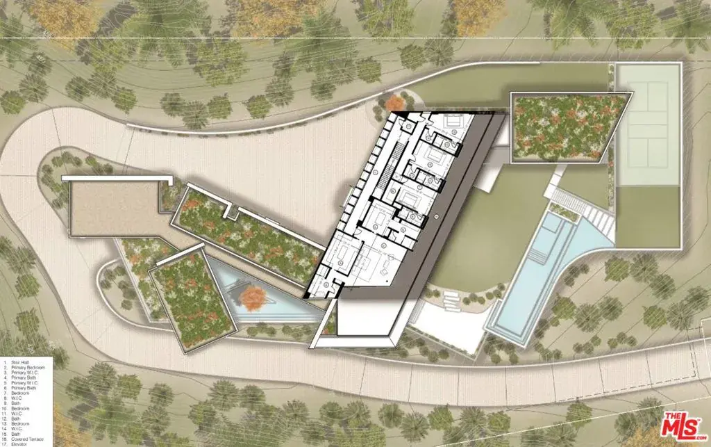 A rare opportunity to develop a world-class estate on 6.2 acres in Pacific Palisades, offering sweeping views of the Pacific Ocean and Santa Monica Mountains. With approximately 1.5 acres of buildable area and a recent soils approval from the City of Los Angeles, this is one of the largest and most significant land offerings in the area. The sale includes preliminary civil and structural plans, as well as a fully realized schematic design by renowned architecture firm Vantage Design Group for a 17,500 SF modern residence. The proposed design is a composition of interlocking volumes arranged around a multi-level courtyard, spanning three levels each with its own material palette and unique perspective. The main living and dining areas are oriented toward the ocean, while guest and spa wings rotate outward to embrace canyon and mountain views. The primary suite and family spaces are positioned to capture sweeping vistas along the coastline. A private, serpentine drive gradually reveals the home, culminating in a dramatic motor court that introduces the residence as a study in dynamic geometries, monumental scale, and refined material contrasts. Interiors are envisioned in rough-hewn limestone, plaster, and timber, and open on all sides to the surrounding landscape. The partially buried lower level houses a free-flowing garage and entertainment zone, illuminated by a dramatic prismatic courtyard. Outdoor amenities in the schematic design include a 6,000 SF lawn, two infinity edge pools, terraced grassy area, and a full-size sports court. The design also includes a home theater, spa, two elevators, multiple entertaining spaces, and garage parking for nine vehicles. A legacy project in one of L.A.’s most coveted neighborhoods, ready for the next visionary to bring it to life.