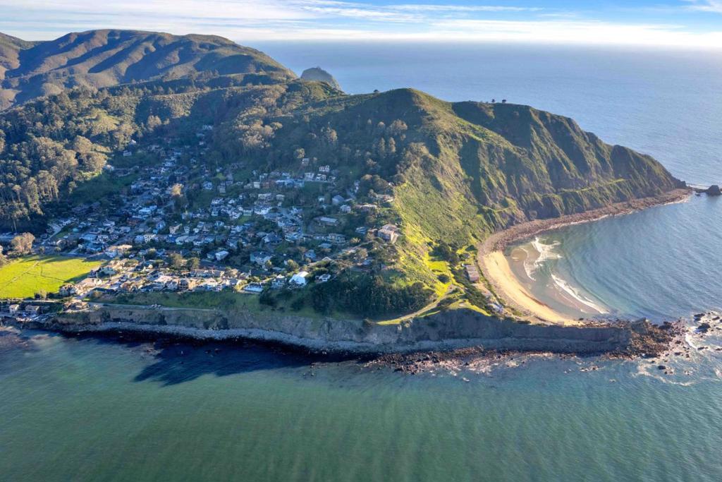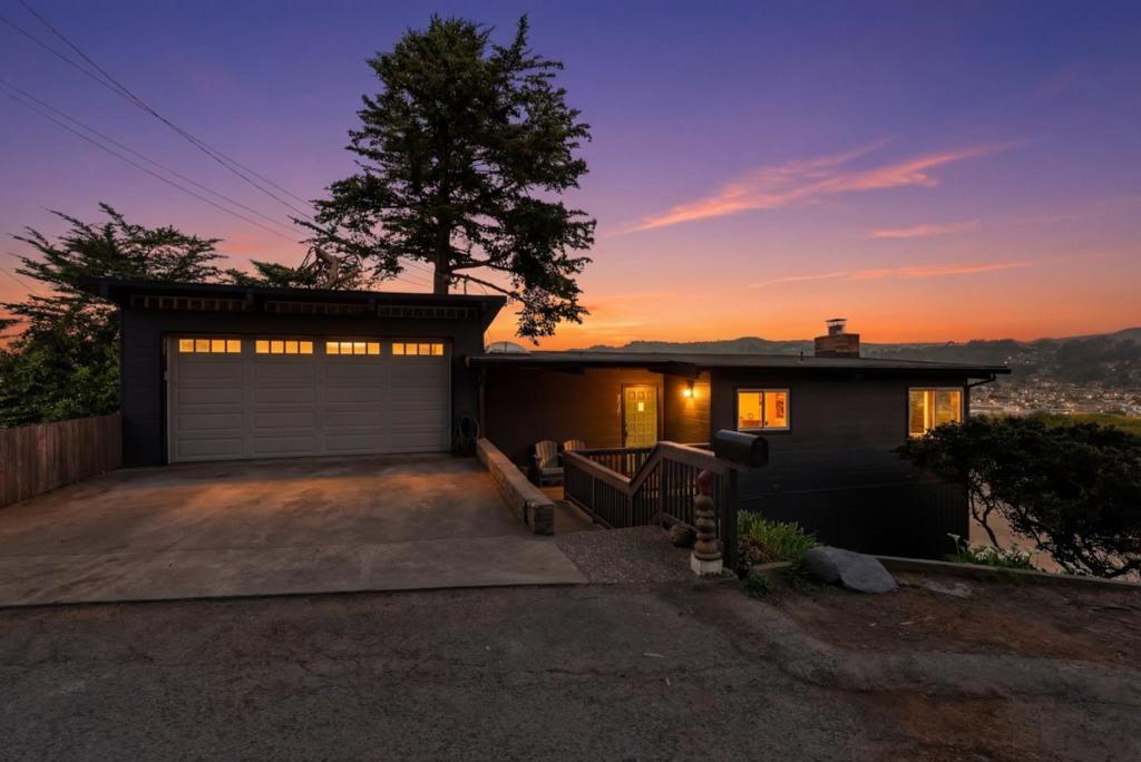 BIG PANORAMIC OCEAN VIEWS! Experience breathtaking, sweeping ocean and coastal views from this stunning 5-bedroom, 4-bath home. Ocean views are enjoyed from multiple spaces, including the bedrooms, the primary suite, the ADU, the hot tub, and the garage. The light-filled upper level features an open-concept layout with Brazilian cherry floors, gas appliances, solid-wood cabinetry, and walls of windows opening onto a private deck, perfect for relaxing or entertaining while you enjoy sunsets and the vibrant coastal vibe. The thoughtfully updated primary suite includes its own view-facing deck and a spa-inspired bathroom with a walk-in shower. Three additional bedrooms, a convenient laundry room, and a breezeway with abundant storage complete the lower level. A separate ground-floor studio apartment offers rental potential or guest quarters, complete with a full kitchen and washer/dryer. A versatile bonus room ideal for a home office, music room, or creative studio. Outside, enjoy low-maintenance living with a fully fenced artificial turf yard and a relaxing hot tub (currently not fully operational). Moments from Humble Sea Brewing, Soul Grind Coffee, Grocery Outlet, and trailheads, this home blends location, lifestyle, and opportunity. Don’t miss this rare Pedro Point treasure!