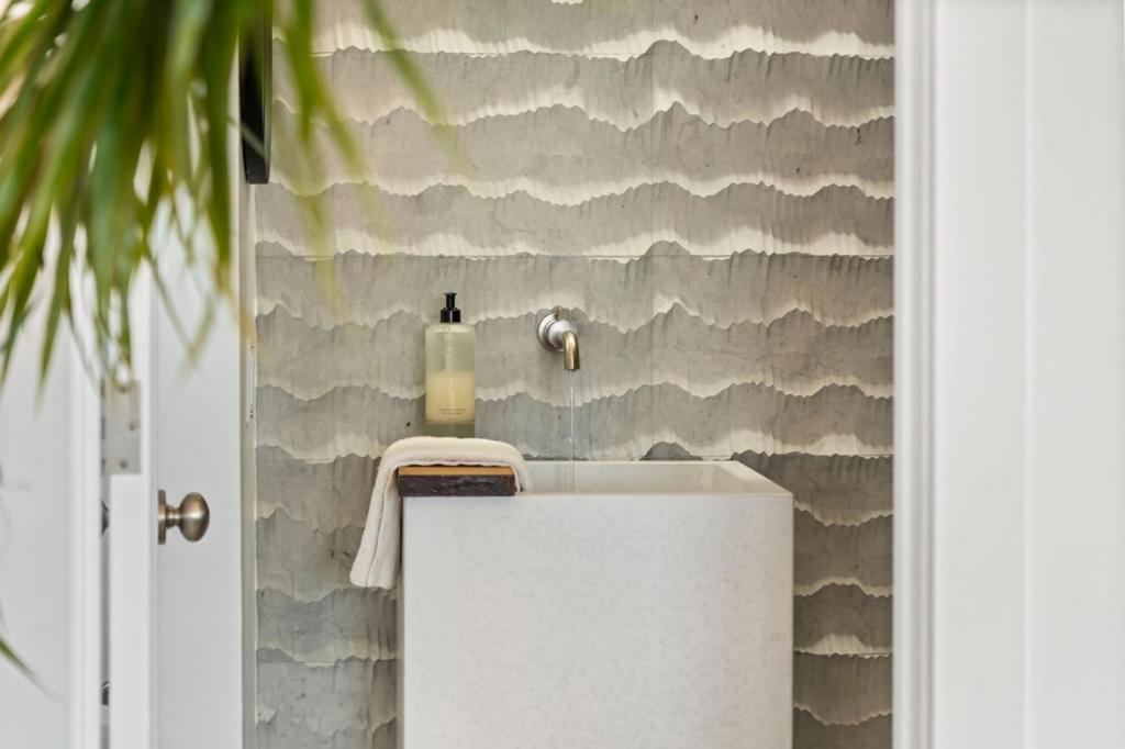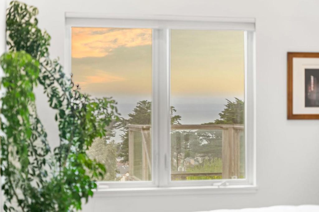 Breathtaking ocean views complement a modern residence designed to inspire calm and ease. Natural materials, sculptural stone, and wide-plank wood flooring create a grounded sense of quiet luxury, supported by impeccable craftsmanship throughout. Indoor and outdoor living blend effortlessly, shaping a home that feels both private and welcoming. Designer Buster + Punch hardware, rectified porcelain tile, and a genuine wood-burning fireplace and furnace add warmth and intention to every space. The chef’s kitchen is refined and functional, featuring waterfall Taj Mahal quartzite countertops and a full suite of Thermador appliances. Floor-to-ceiling windows draw in natural light and frame sweeping ocean views. The primary suite offers custom white birch paneling and a spa-inspired bath featuring a dual walk-in shower and custom sink beneath a skylight. The additional bathrooms continue the same thoughtful approach, pairing clean modern fixtures with artisanal finishes such as Italian limestone walls and touchless bidets. Three ocean-view decks unfold across the property, creating a rare, layered outdoor experience. A massive crawl space with seven-foot ceilings provides exceptional storage. 15 min to San Francisco & SFO Airport