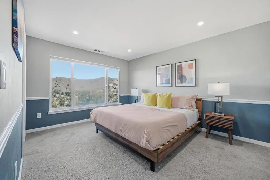 Amazing views! Experience elevated living in this stunning 4-bed, 3.5-bath hilltop home with panoramic valley and mountain views! Nestled on one of Park Pacific’s most desirable cul-de-sacs, this beautifully remodeled and expanded residence is among the largest in the Valley. Updated in 2017 with meticulous attention to detail, it offers modern comfort, timeless design, and bright, open layout. The main level flows seamlessly to an expansive deck with relaxing hot tub and serene hillside backdrop. Recessed lighting throughout enhances the warm ambiance, while every room features large picture windows framing breathtaking mountain views. Upstairs features spacious family room, four bedrooms, and spa-inspired bathroom with walk-in shower. Enjoy premium features, including dual-zone heating, tankless water heater, and abundance of natural light. Outside, your private garden oasis awaits. Pick fresh apricots, plums, avocados, and pomegranates right from your own trees. A rare combination of space, style, and location, this Park Pacifica gem is truly a must-see!