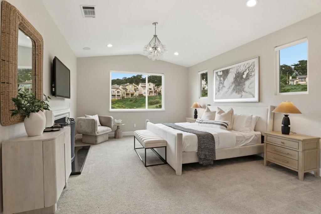 Perched above the coastline in Pacificas coveted Skyridge enclave & offered for the first time since its original construction, 868 Skyridge is a rare offering of exceptional scale, privacy & sweeping ocean-view living. Spanning over 3000 sq ft, this expansive residence is thoughtfully designed with multiple entertaining spaces & private suites. Dramatic interiors unfold with timeless style: rich hardwood floors, soaring living spaces & walls of glass that frame breathtaking canyon & sunset vistas. The heart of the home is anchored by a chefs kitchen with large island, top-of-the-line appliances & seamless flow into open dining & gathering areas. A custom pantry & a dedicated laundry room offer beautifully designed, aesthetic storage solutions. The primary suite is a sanctuary of its own, complete with spa-like bath elements including walk in closet. Step outside to the showpiece: a newly rebuilt deck with a private hot tub where you can soak in both the warmth and the horizon. No shortage of storage, with a 2-car garage and a spacious downstairs storage. Set on a quiet street just minutes from Milagra Ridge trails, Linda Mar Beach, and Pacificas top schools, with effortless access to HWY 1, 280 & Silicon Valley beyond- this is coastal luxury living at its most inspiring.
