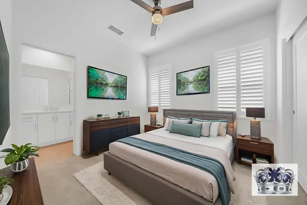 Residence 1X is located in the Verve neighborhood of University Park in Palm Desert and offers a stylish, low-maintenance lifestyle with an alley entrance that adds great curb appeal. This two-story home features an open-concept layout where the kitchen flows seamlessly into the living and dining areas, with optional multi-stack sliding doors to create a true indoor/outdoor living experience. Upgrades include quartz countertops, large format tile flooring downstairs and in all wet areas, full plantation shutters throughout, and paid solar. A loft and separate cabana/game room provide flexible space for work or play, and the detached bonus room is perfect for a gym, office, or guest space. The backyard is fully landscaped with artificial turf, making it both functional and easy to care for.