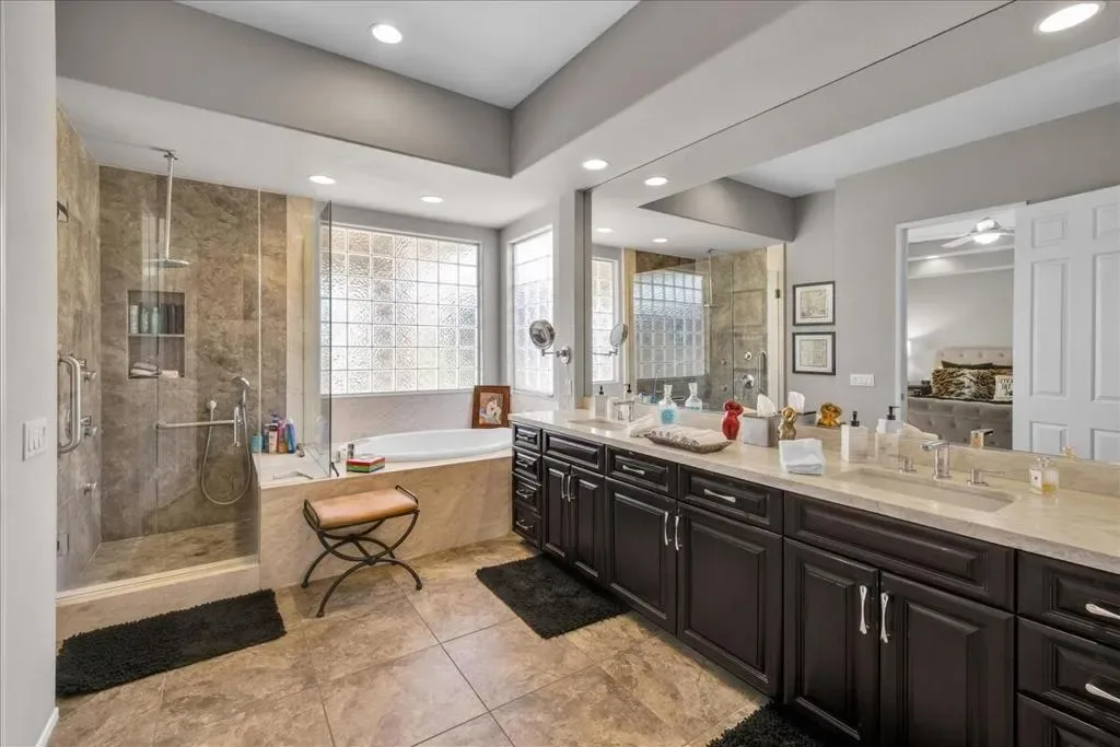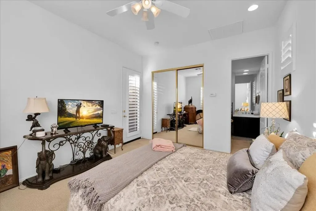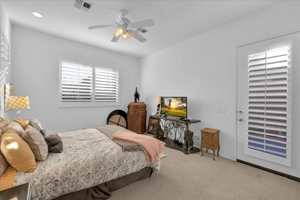 An exceptional find in the heart of Palm Desert–discover Sandpiper Court. This move-in ready, single level property–shows like a model home! FOUR bedrooms 3.5 baths, including a private, detached casita. Welcoming gated courtyard entry. Double doors open to light-filled foyer. High ceilings accentuate the airy open feel–resulting in a floorplan that works as well for group entertaining as intimate get togethers. Formal dining, spacious great room with raised hearth fireplace. Chef’s eat-in kitchen features quartz island with cooktop, granite counters & backsplash, double ovens, all stainless appliances (tons of cabinetry & countertop space), separate buffet niche to formal dining. French doors off great room open to large backyard with covered patio spanning length of home. Free-form pool with waterfall spa add to the resort-style ambiance. Built-in BBQ, mature desert-friendly plantings and hardscape. Primary suite boasts spa-like bath with rain head shower and soaking tub. Large interior laundry with sink & cabinetry. Convenient storage & linen closets. Split bedroom plan provides privacy. Layout conducive for home office space and guests. Multiple upgrades and meticulous upkeep of property. Efficient leased solar system. Plantation-style shutters, over-sized tile flooring and carpet in bedrooms. 2-Car attached garage with additional storage. Sandpiper Court’s central Palm Desert location is ideal. On a quiet cul-de-sac just minutes from El Paseo, College of the Desert, McCallum Theatre as well as near shopping, dining, hiking, CV link trail system, schools, top-tier medical facilities, golf–you name it, it’s nearby! Enjoy the gorgeous interior, lounge poolside, work, entertain, stargaze–this is the IDEAL property to call HOME (PLUS no HOA)!