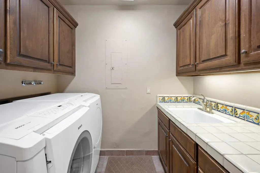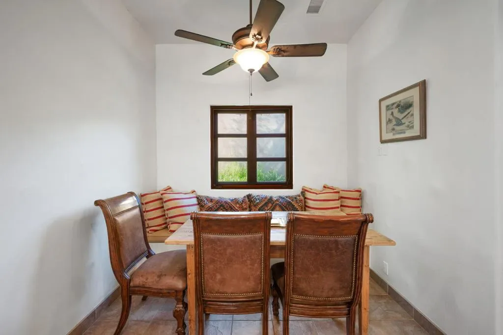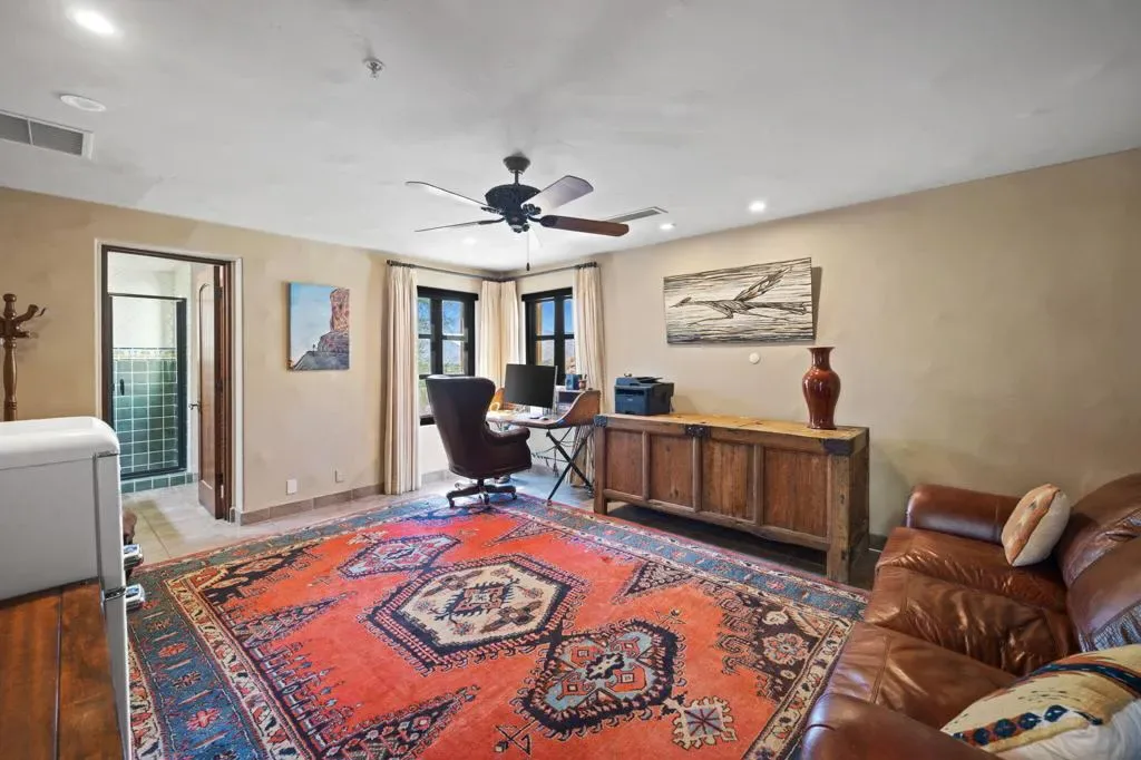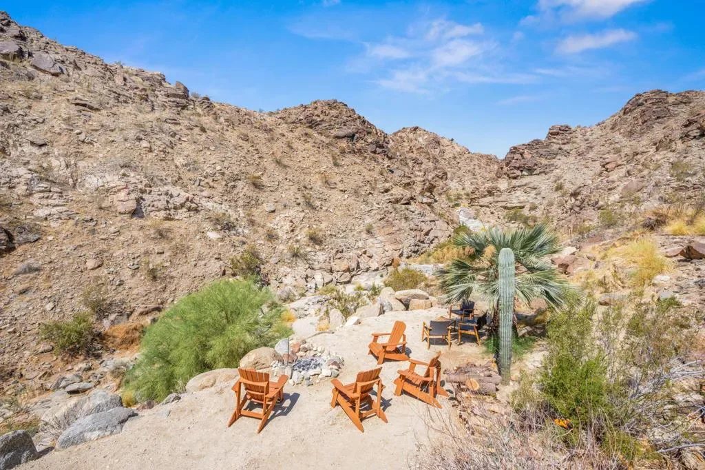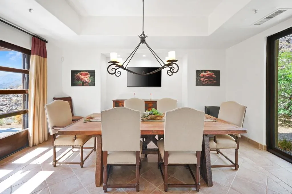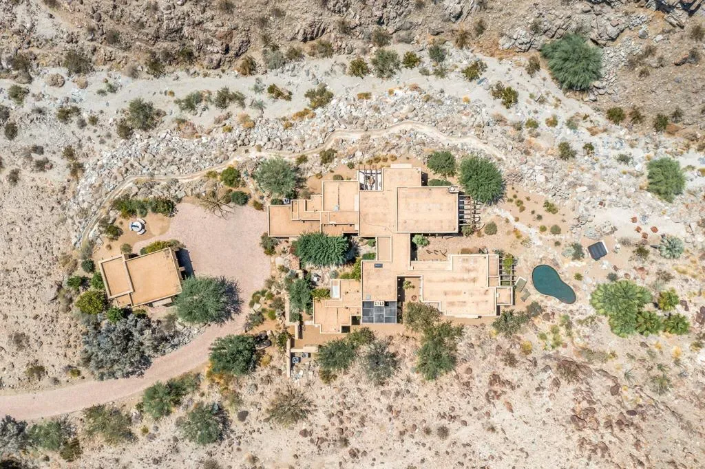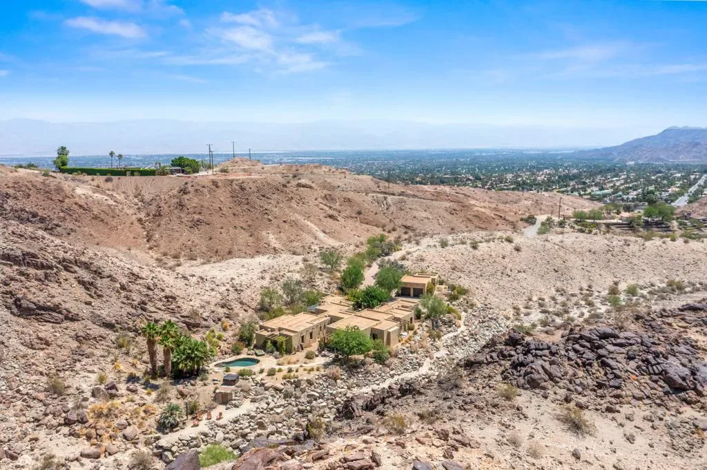 Tucked into the Cahuilla Hills of Palm Desert, this Exceptional and Enchanting Santa Fe-style estate offers unmatched privacy, panoramic views, and authentic architectural charm–just minutes from the upscale shops and fine dining of El Paseo. Situated on two expansive parcels totaling 7.63 acres, this 6-bedroom, 5.5 bath retreat is designed for luxurious desert living.The home features a separate master wing with dual suites and each has its own bathroom and private dressing room. There’s an additional ensuite bedroom in the main house, and two private guest casitas–perfect for hosting family or friends. A richly appointed library with a dual-sided fireplace doubles as a bedroom, adding versatility to the layout.Showcasing exquisite craftsmanship and designer finishes throughout, this estate includes a spacious eat-in kitchen with a central island, a grand dining room, and a dramatic living room with soaring beamed ceilings, walls of glass, and a commanding fireplace.Step outside to discover the beauty of nature with multiple serene outdoor patios, a sparkling salt water pool and separate raised spa, with breathtaking mountain and valley views across nearly 8 acres. Located near the exclusive Stone Eagle Golf Club–with memberships available–this property is a true desert sanctuary for those seeking elegance, space, and tranquility.Offered Furnished per inventory list. Property conveys with Two parcels. APN# 628-130-010 (approx. 5.0 acres) and APN# 628-130-012 (approx. 2.55 acres) included.