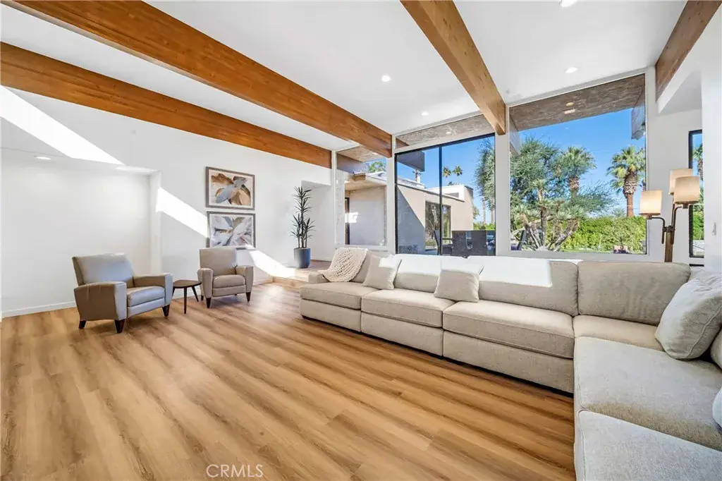 Nestled on a spacious 0.5-acre lot, Casa Ironwood is a 3,224 square foot Mid-Century Modern masterpiece that embodies the spirit of Palm Springs. This stunning residence showcases an open floor plan, abundant natural light, and a seamless flow between indoor and outdoor living spaces. The interior features warm hardwood floors that extend throughout, creating a sense of continuity and warmth.