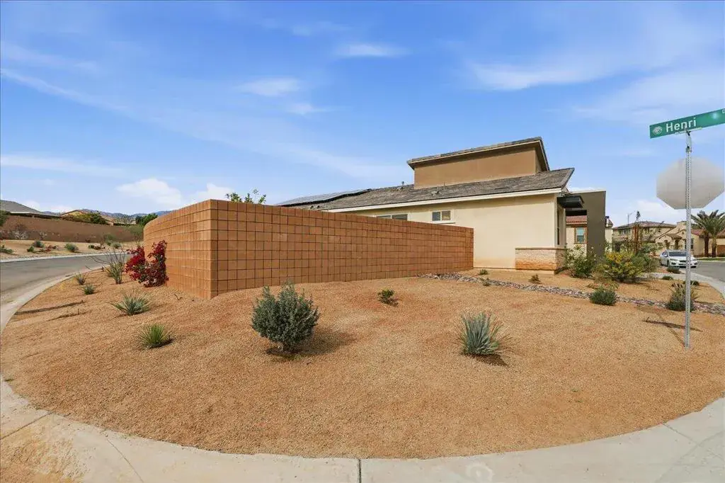 Almost brand-new single-story home situated on a desirable corner lot within the Sage development in Palm Desert. Built in 2024 and set on one of the largest lots in the community, this home offers upgrades you won’t find with new construction. The owners have already completed full landscaping including grass, decorative rock, flatwork, outdoor lighting, and a variety of mature fruit trees. Inside, the home features upgraded interior paint, ceiling fans, updated light fixtures, and window blinds throughout. Ceramic tile flooring spans the entire 1,959 sq. ft. floor plan, which includes three bedrooms and two and a half bathrooms. The spacious primary suite offers a large walk-in shower. The kitchen is well-appointed with rich cabinetry, stainless steel appliances, recessed lighting, a large quartz countertop with breakfast bar seating, and a generous pantry. Additional highlights include a separate laundry room with sink and a paid-for solar system, keeping energy costs low. Sage residents enjoy access to a small gym, clubhouse with big screen tv, BBQ/Firepit area, heated 25-meter community pool and spa and front yard landscaping. Priced close to what the owners originally paid, this home represents exceptional value in today’s market.