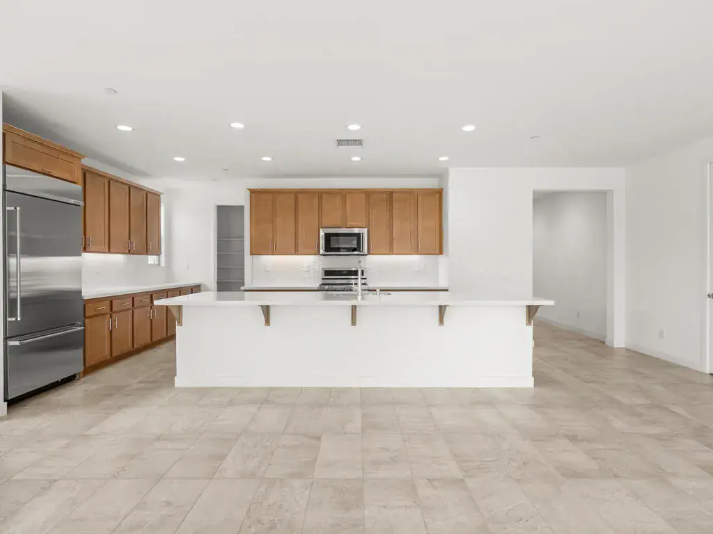 Brand-new and never lived in, this highly upgraded Ponderosa Home Builders residence is set on a rare, oversized private corner lot exceeding 11,300 sq. ft., offering a level of space, privacy, and future flexibility that is hard to find. The thoughtfully designed floor plan includes two bedrooms plus a den, providing flexibility for a home office, guest space, or additional living area.With ample room to add a pool, spa, and a ADU, this property delivers exceptional long-term lifestyle and investment potential.Built by Ponderosa Home Builders, a developer recognized for superior craftsmanship, structural quality, and enduring finishes, this great room-style home is thoughtfully designed for modern living and entertaining.The kitchen features quartz countertops, double ovens, a built-in refrigerator, under-cabinet lighting, a spacious walk-in pantry, and upgraded flooring, creating a refined yet highly functional living space.Eight-foot doors throughout enhance the home’s open, upscale feel, while a tankless water heater and owned solar system contribute to long-term energy efficiency and comfort.Residents enjoy access to a newly completed clubhouse featuring a resort-style pool and spa, state-of-the-art fitness center, yoga lawn, and BBQ area.Conveniently located near shopping, dining, entertainment, and medical centers, with Palm Springs approximately twenty minutes away.A truly unique opportunity to own a pristine, newly built Ponderosa home offering uncommon privacy, an oversized corner lot, premium upgrades, and a level of construction quality that sets it apart!
