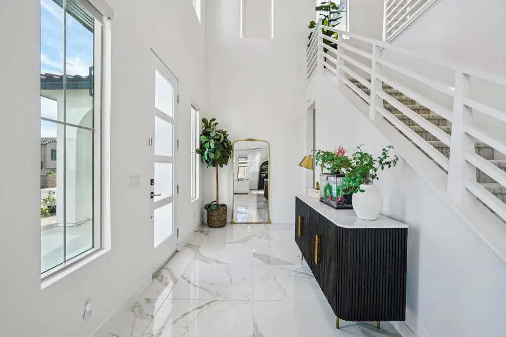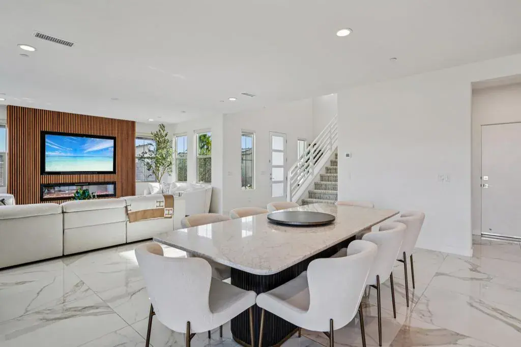 Stunning Turn Key Resort Style Home with Panoramic Views 74404 Nichols Dr, This premium Palm Desert view home has been upgraded with over $150,000 in interior and exterior enhancements, blending modern luxury with resort style living. The 2,740 sq ft residence sits on a rare 10,000 sq ft elevated corner lot, offering sweeping valley and mountain panoramas from every window. Inside, you’ll find new flooring, gourmet cabinetry, automatic blinds, sheer curtains, a custom TV station with under island fireplace, garage cabinetry, and a Tesla charging station. The spacious layout includes four bedrooms and three and a half baths, highlighted by a private guest suite with its own en suite bath.The dramatic open stair design flows into the living space, while floor to ceiling sliding doors seamlessly connect indoor and outdoor living. The backyard remodel, valued at $90,000, features three waterfall installations, a custom putting green, and lush entertaining zones with 360 degree views. Beyond the home, residents enjoy full access to resort style community amenities including multiple pools, spas, a state of the art gym, outdoor movie theatre, lounge areas, game tables, party room with kitchen, BBQ bar, playgrounds, pickleball and bocce courts, and scenic walking trails.Move in ready with crisp modern finishes and meticulous attention to detail, this property offers a rare opportunity to own a fully upgraded, turnkey view home in Palm Desert. Schedule your private showing today.
