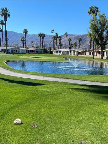 Palm Desert, Portola Country Club a Private Gated 55+ Community, 18 Hole Golf Course Free to owners! 1,940SF Home, Two Bedroom/Two Bath, Open Floorplan. Look no further, Incredible Golf Course Views on the Green w/Mountain Views also include Water & Fountains, mature Fruit Trees, Lush manicured greens! Home has remodel/updates throughout, Slider Door Entry opens to expansive Living Room w/Vaulted ceilings and Dining. A beautifully appointed Kitchen w/Quartz, Large center island. Large Inside Laundry Room, includes Washer/Dryer and built-in Storage and Desk. Primary Bedroom w/walk-in Closet and new Remodeled Private Bath; Walk-in Shower, Dual Sinks. Bedroom 2 can be used as Guest Room or Office. 2nd Bath is also fully remodeled. Large covered Carport with large Storage at rear. Newer A/C and Electrical supply. Community offers in addition to Golf and Putting Green, 3 heated Pools w/Jacuzzi’s, Tennis Court, Pickle Ball Courts, Bocci Ball Courts, Dog Park, RV Parking available, Club House incl Pub, Billard Room, Gym, Library, Large Dining faculty. Important to note YOU OWN YOUR LAND! Close to El Paseo, Restaurants, Malls, Eisenhauer Medical Center and future Disney Development.