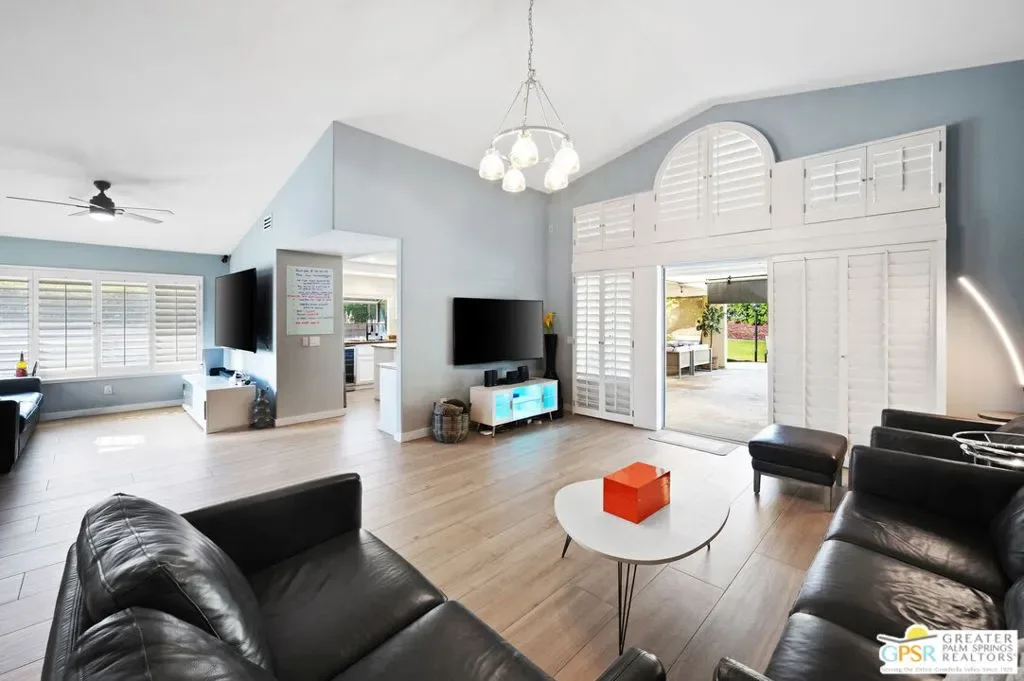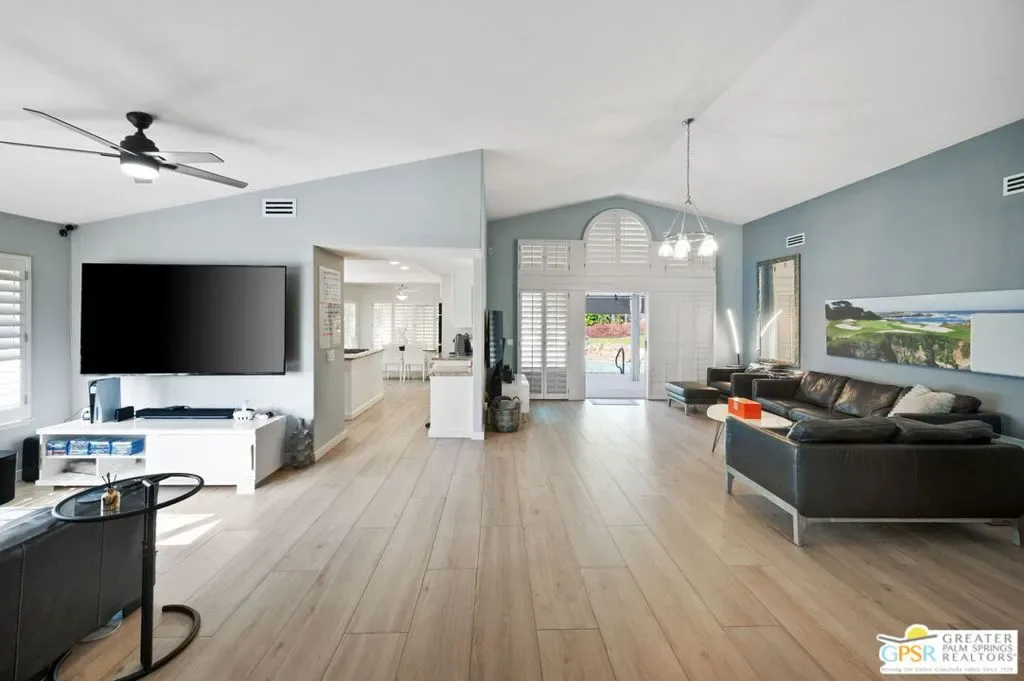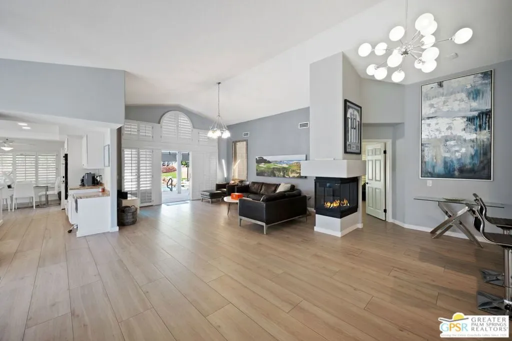 Welcome to 39141 Sweetwater Drive, a beautifully updated home nestled within the hidden gem community of Avondale Country Club. From the moment you step inside, soaring vaulted ceilings and an expansive, light-filled living room create an inviting sense of space and comfort. A stylish built-in bar adds the perfect touch for entertaining guests or enjoying a relaxed evening at home. Designed with privacy in mind, the home features two spacious primary suites situated on opposite ends of the floor plan, each offering modern, upgraded bathrooms for comfort and convenience. Rich, large plank tile flooring throughout the home adds warmth, durability, and timeless elegance. Step outside to your own private resort-style oasis. The backyard is ideal for both relaxation and entertaining, featuring two covered patios, a built-in BBQ, and a sparkling pool and spa with a tranquil waterfall feature perfect for soaking up the desert lifestyle. The garage is equipped to accommodate an electric car charger, adding modern convenience to this exceptional property. Residents of Avondale Country Club enjoy access to outstanding amenities, including tennis and pickleball courts, a guard gate, a clubhouse, a fitness center, a driving range, and a beautifully maintained golf course.
