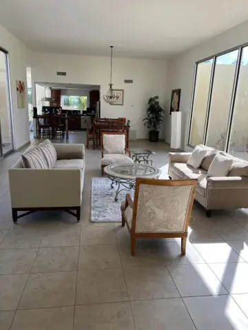 Now available all dates. Seasonal Rates; Oct-Jan.: $6,000, Feb. – April: $8,000, May-Sept.: $4,000. The Deserts Best Kept Secret is Avondale Golf Club. Private and beautiful gated golf course community in Palm Desert. Seasonal golf memberships available. Relax in this fully upgraded 3 bedroom, 3 bathroom modern private residence. South facing located overlooking the lake and the 10th fairway. Open floor plan, bright and light with lots of windows & sliding glass doors. Great high ceilings. Spacious living room with flat screen TV, high top dining table for 8 plus kitchen high top for 4. Family room off the kitchen. Great stainless steel equipped kitchen with gas cooktop & double ovens. All bedrooms have Cal King beds & flat screen TV’s. Huge pool and patio area with gas grill BBQ. Outdoor dining table with umbrella to dine alfresco. Minimum rental is 30 days. Call agent for specials.