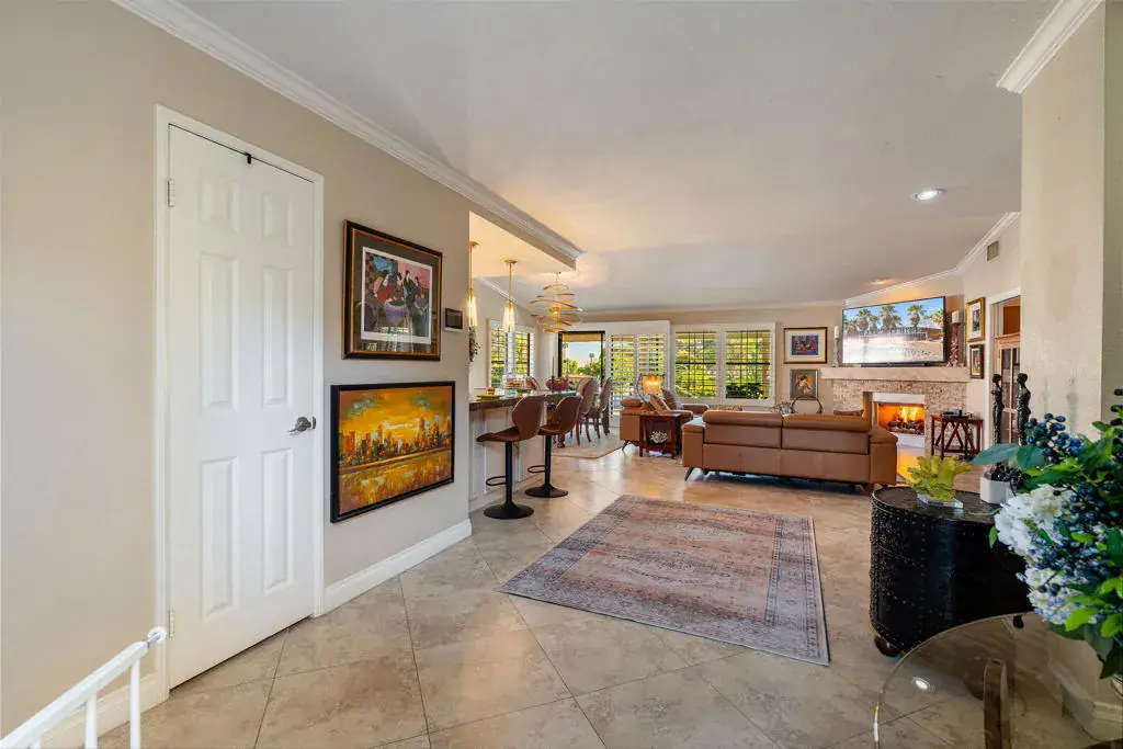 At 39196 Sweetwater Drive, luxury meets desert living and details meet design.The home sits along the 18th fairway of Avondale Country Club, offering a front-row view of sculpted greens and mountain views. The refined open layout has been fully updated, expertly suited for quiet mornings or lavish dinner parties. The great room opens wide with high ceilings, notable lighting fixtures, and a stone fireplace that anchors the space. The kitchen has been upgraded with sleek granite, stainless steel appliances, a counter depth refrigerator, plus a breakfast bar elevating everyday comfort. The primary suite feels like a private retreat tucked away from the main living quarters. The primary bath features a high tech toto toilet along with a spacious shower. A second guest room welcomes visitors, while the third room is styled as a den — perfect for reading, working, or simply unwinding. It adds a touch of worldly charm, the kind you find in a well-appointed traveler’s lounge. Outside, the home reaches its full expression where every hour of the day carries its own light. The front yard landscaping includes artificial turf perfect for low maintenance and consistent aesthetics. The backyard features a salt-water pool and spa. The wraparound patio includes a newly installed misting system. Multiple vignettes anchor the outdoor living–capturing fairway views and dramatic sunsets. This desert retreat is luxurious without feeling loud, peaceful without feeling remote.