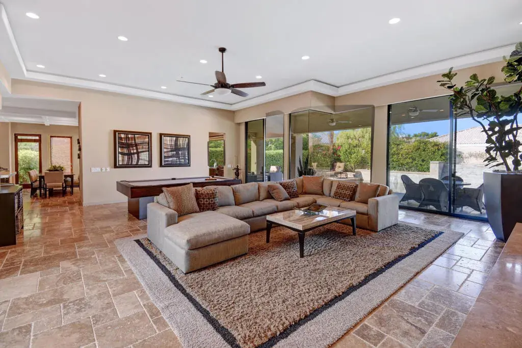 Welcome to your vacation retreat. PD141 Is a private desert home located in the gorgeous Avondale community, which is considered ”one of the best kept secrets in the desert.” With over 4000 square feet of living space, a single level layout, beautiful private pool and spa, and vast kitchen, this home will satisfy all your vacation needs. You will delight in the open floor plan of this home. The living room is perfect for entertaining, with an oversized L-shaped couch with plenty of room to gather with your family and talk about your favorite vacation memories. The large picture window and fireplace are perfect for cozy nights in. The family room hosts a large sectional sofa and large flat screen television. If you are look for fun, this home offers a wet bar with seating for seven, dazzle your friends with the perfect cocktail before heading over for a game of pool. The generous kitchen includes beautifully granite countertops and tiled floors, perfect for easy clean up, and a large center island, double ovens and stainless-steel appliances – this is a sure win for the cook of the family. The dining area offers seating for 8 paired with large window views of the handsomely landscaped back yard. This home is perfectly designed to keep all your family and friends comfortable with plenty of space for everyone to be together. Available for 1 – 6 month lease. April $16500, May – October $8000 per month. Already booked December 2024 – March 2025