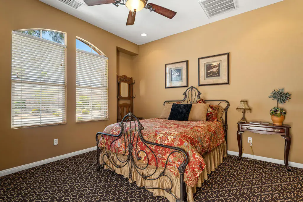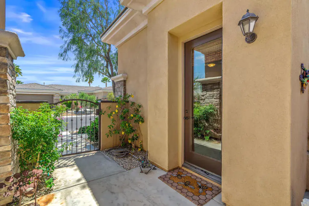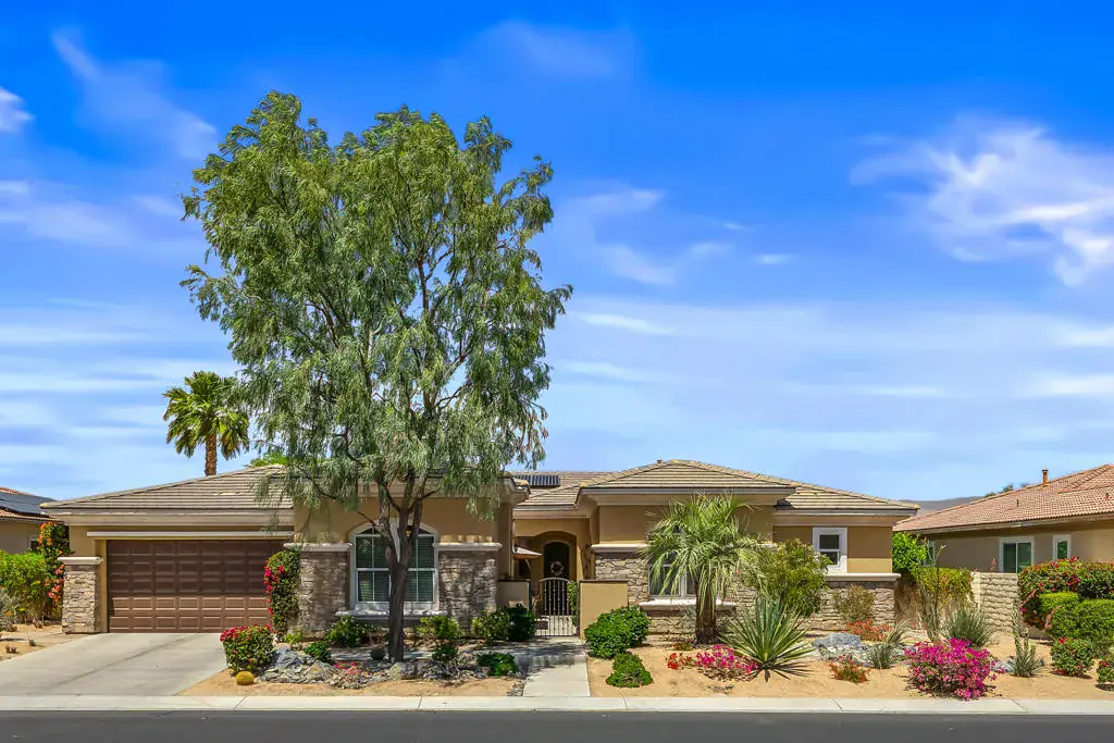GRAND TIMELESS ELEGANCE! Located in the gated community of Brenna at Capri in highly sought after Palm Desert. This fabulous 4 bedroom/4 bathroom home is ideally located close to Ronald Regan Elementary School and vibrant Freedom Park, home to public Pickle Ball Courts and Sports Fields. Enter from a richly landscaped front yard into a delightful courtyard with sitting area and custom stone fireplace. The generously sized detached Casita is the perfect spot to host guests or use as a private office. Enter the main house through an opulent Foyer and be greeted by an open Living Room featuring a wet bar, spotlights for artwork and French Doors that open to the alluring Pool/Spa area. The formal Dining Room is brilliantly appointed with French Doors the open to the Courtyard offering loads of natural light! The Family Room is warmed by a cozy fireplace and is open to the Kitchen and Breakfast Nook. The Gourmet Chef’s Kitchen is an entertainer’s DREAM! Boasting solid wood cabinetry, granite slab counter tops, dual ovens, 5 burner gas cook top, pot filler faucet, backsplash with artful copper inlay, pantry, large island with Breakfast Bar and eat-in Breakfast Nook! The masterful Primary Suite is a tranquil retreat with large sitting area, 2 walk in closets, dual vanities, stone shower with laser cut tile trim and soaking tub overlooking the citrus garden! Nicely separated are 2 Guest Bedrooms adjoined a Jack ‘n Jill bathroom. The Backyard is adorned by stone walkways tucked into lush desertscape and citrus trees, completed by a pebble tec pool, raised spa with cascading waterfall! Fine finishes and quality upgrades are found here including double crown molding, wainscotting, surround sound speakers, solar system, custom closet design, security system and newer pool heater and pool pump! Not to be forgotten is the 3 car garage with custom cabinetry and work bench with direct home access! Lovingly and Meticulously maintained by the original owners, this is a TRUE find! ELEGANT COMFORT with the BEST in indoor/outdoor living!