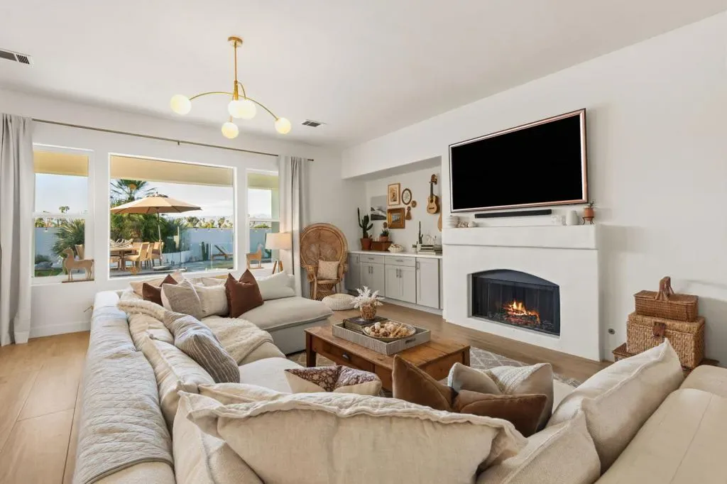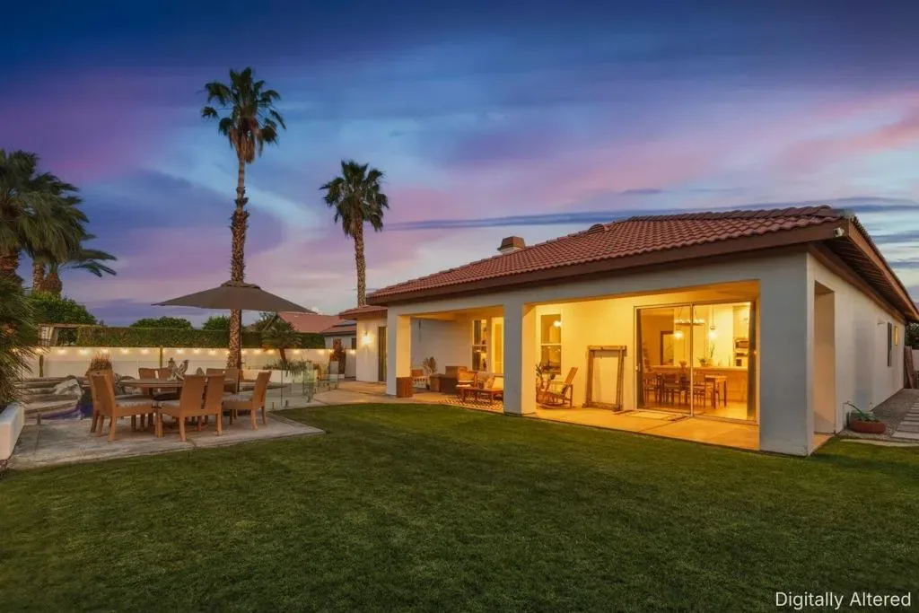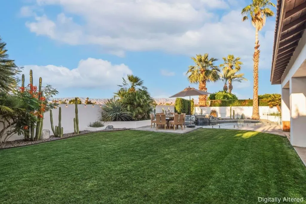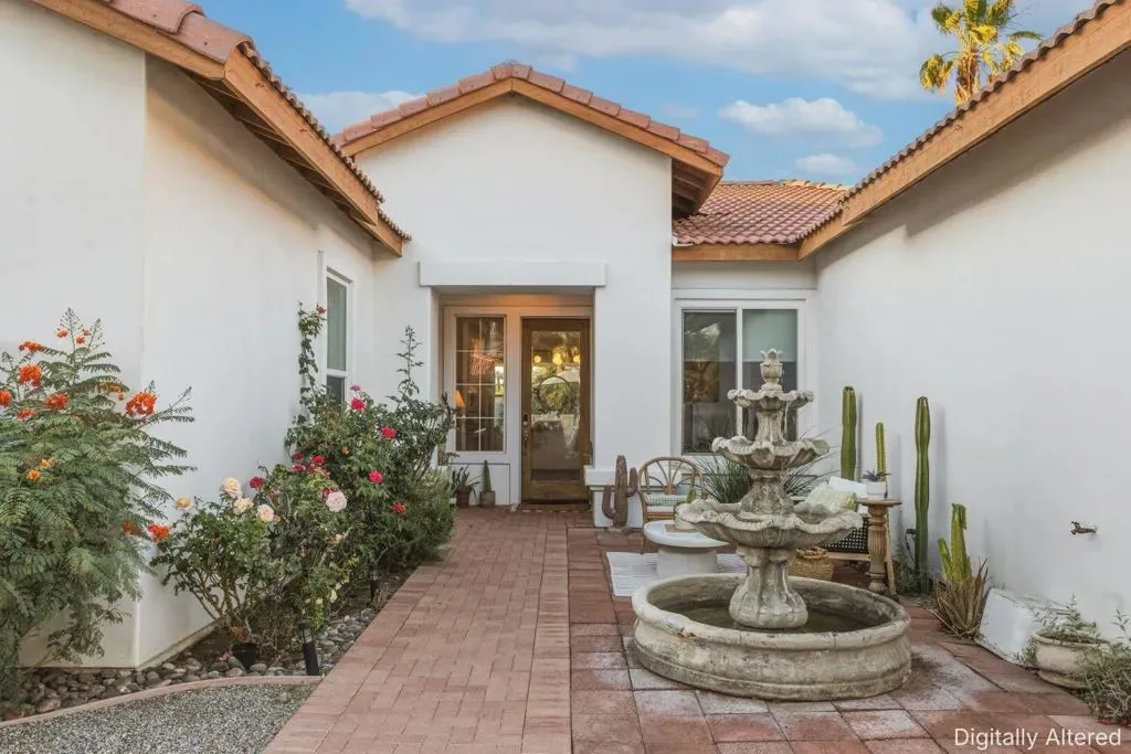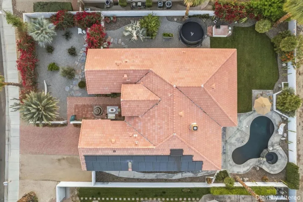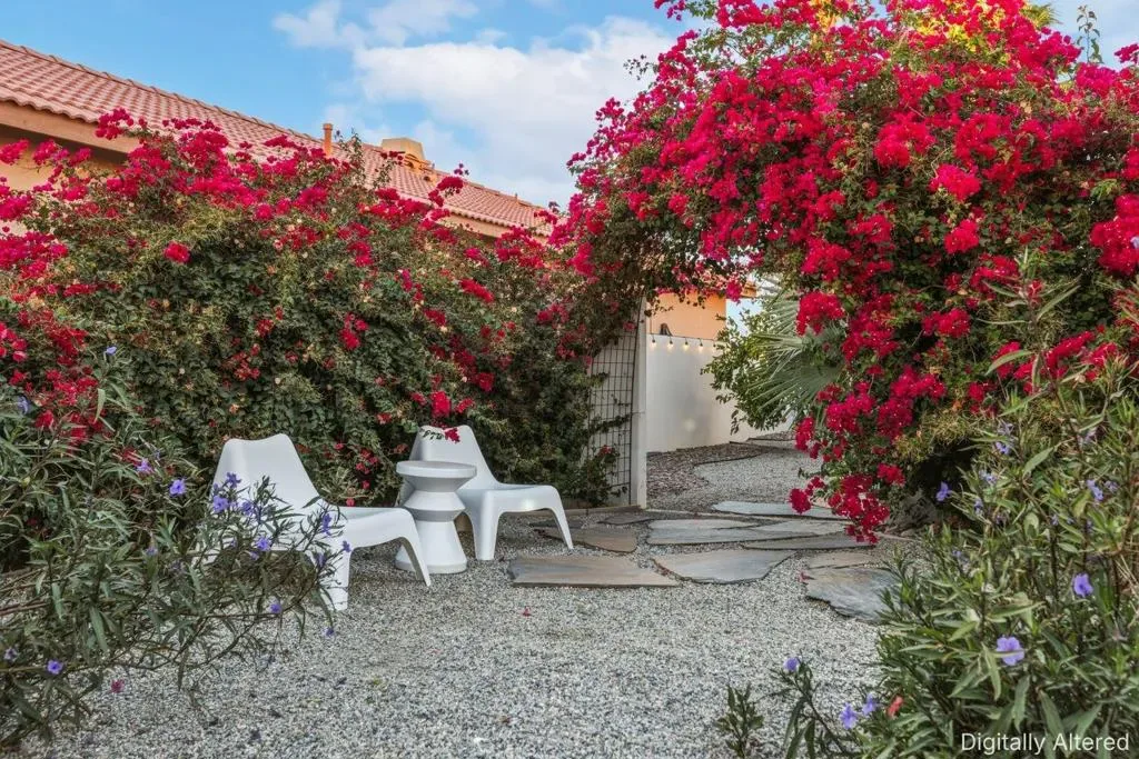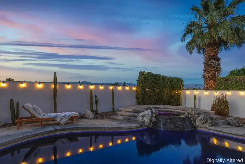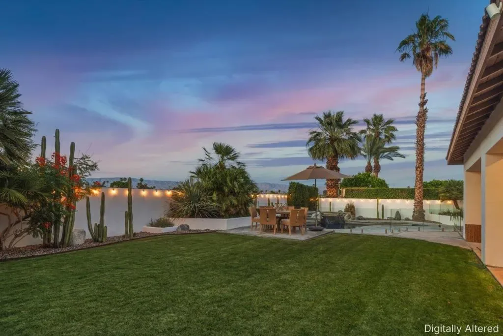 Experience a beautifully modernized residence showcasing exceptional upgrades and modern comfort throughout. Located in the highly desirable community of Canyon Crest, this home features 3 bedrooms plus an office/den that could serve as a fourth bedroom and comes fully furnished, offering a turnkey opportunity. At the heart of the home is a completely redesigned kitchen with high-end improvements, including all-new custom cabinetry, premium Quartz countertops, designer lighting, and a beautifully finished backsplash. Matching cabinetry extends into the living room to create custom built-in shelving and a media center. Comfort and efficiency are maximized with two brand-new AC units, a $24,000 upgrade ensuring year-round climate control and fully owned solar for energy savings.The home continues to impress with all-new flooring, fresh interior paint, updated baseboards, and new faucets and fixtures. Updated windows bring in natural light, and a custom glass pool enclosure adds style and function. Nearly $150K in upgrades have been completed over the past two years. The backyard features a pool with beach entry, raised spa, grassy area, vegetable gardens, desert landscaping, and a covered patio with mountain views and a built-in outdoor BBQ.