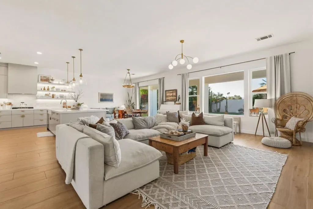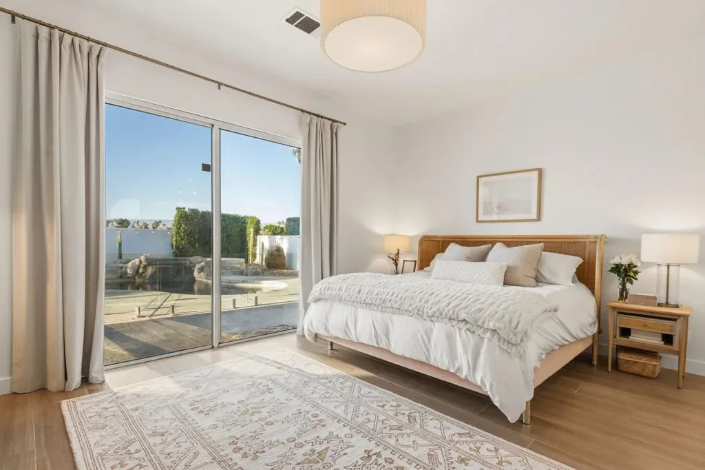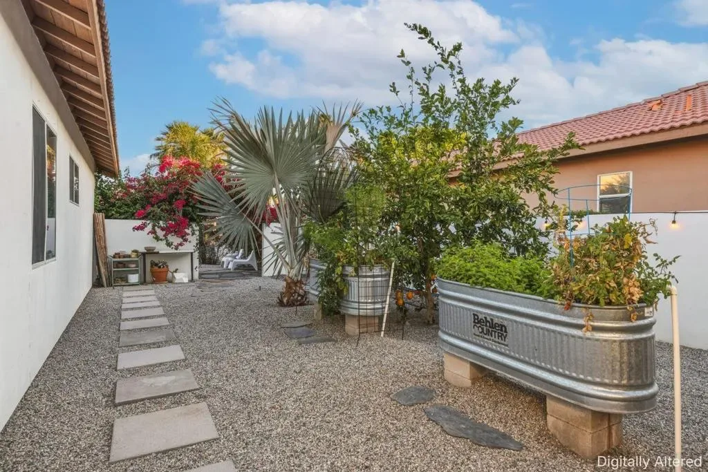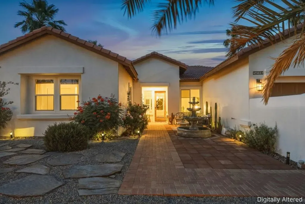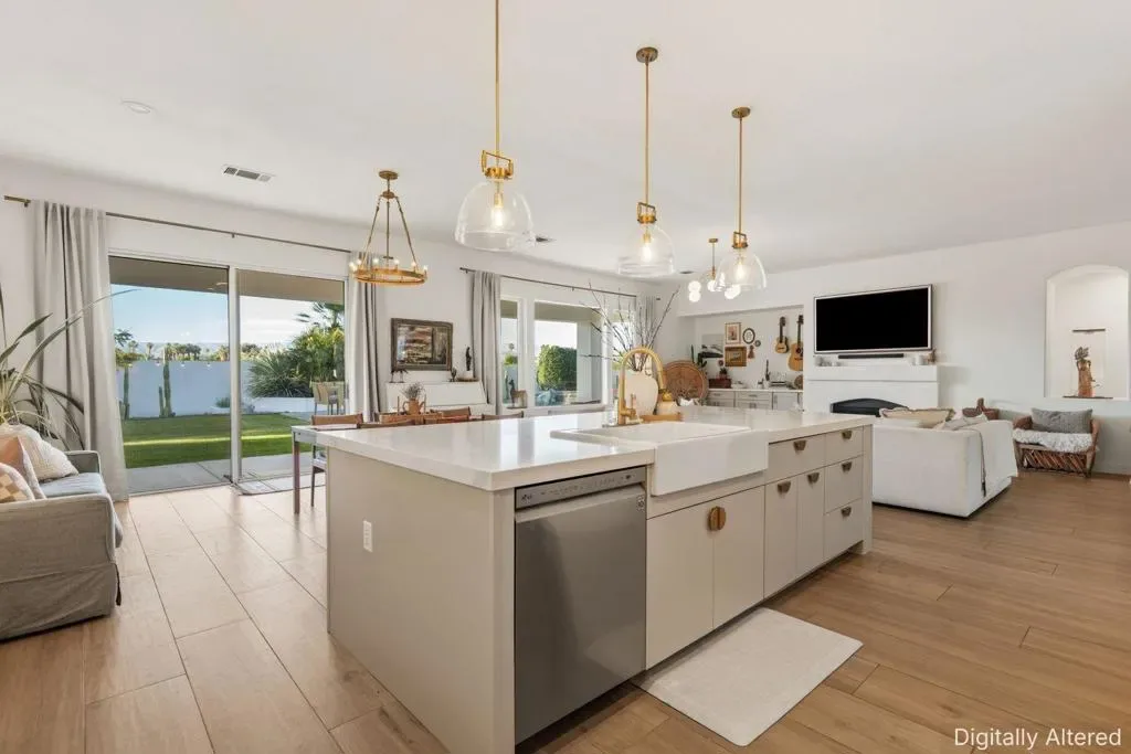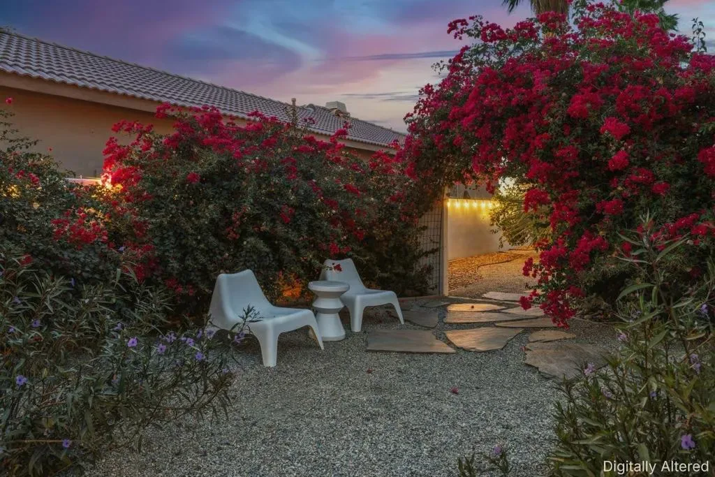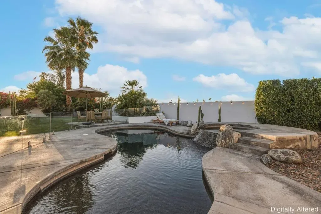 Experience a beautifully modernized residence showcasing exceptional upgrades and modern comfort throughout. Located in the highly desirable community of Canyon Crest, this home features 3 bedrooms plus an office/den that could serve as a fourth bedroom and comes fully furnished, offering a turnkey opportunity. At the heart of the home is a completely redesigned kitchen with high-end improvements, including all-new custom cabinetry, premium Quartz countertops, designer lighting, and a beautifully finished backsplash. Matching cabinetry extends into the living room to create custom built-in shelving and a media center. Comfort and efficiency are maximized with two brand-new AC units, a $24,000 upgrade ensuring year-round climate control and fully owned solar for energy savings.The home continues to impress with all-new flooring, fresh interior paint, updated baseboards, and new faucets and fixtures. Updated windows bring in natural light, and a custom glass pool enclosure adds style and function. Nearly $150K in upgrades have been completed over the past two years. The backyard features a pool with beach entry, raised spa, grassy area, vegetable gardens, desert landscaping, and a covered patio with mountain views and a built-in outdoor BBQ.