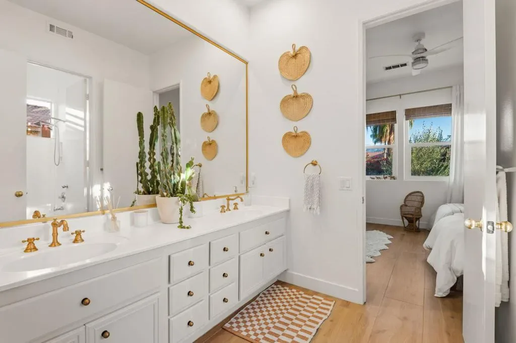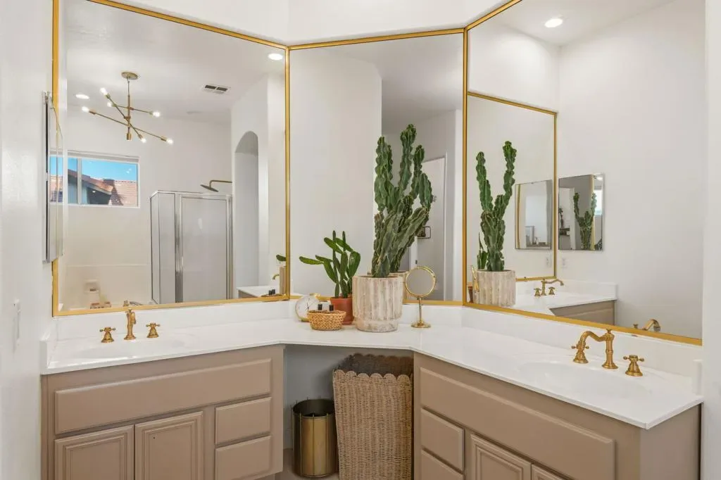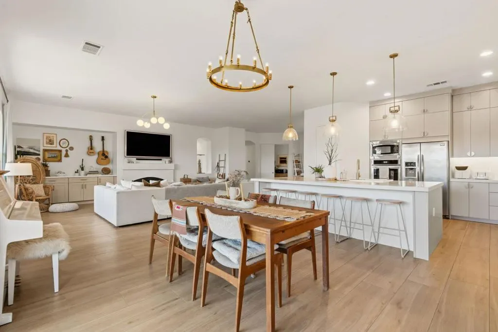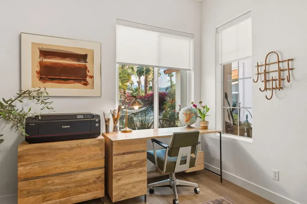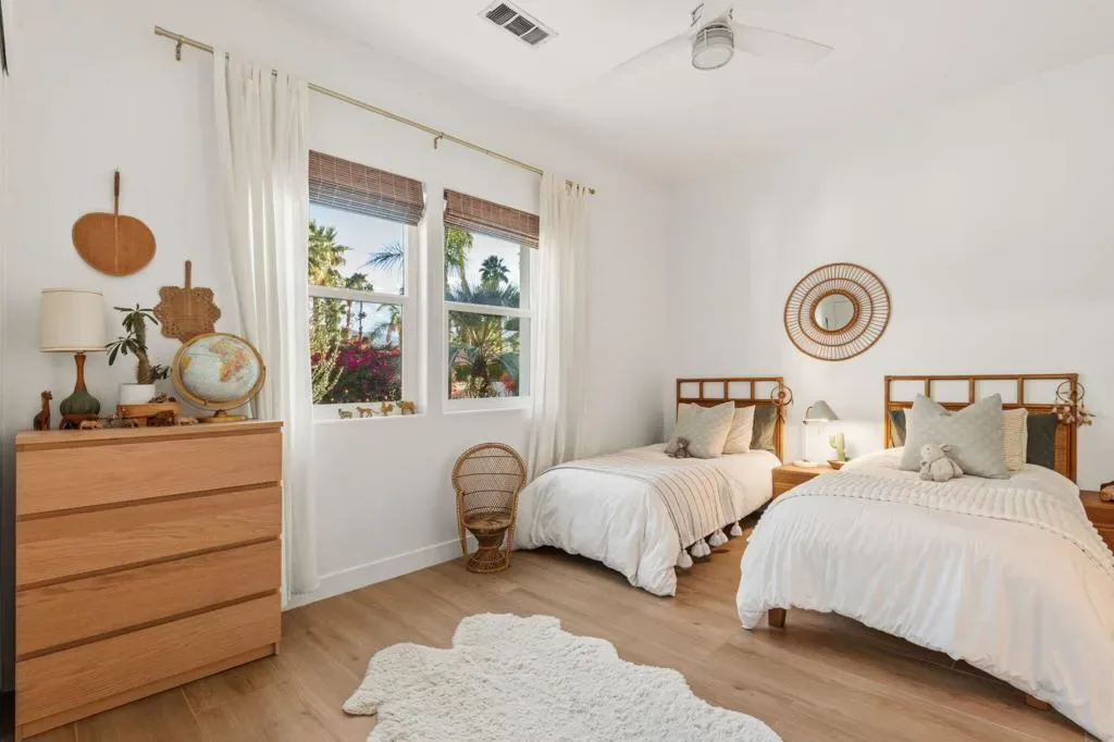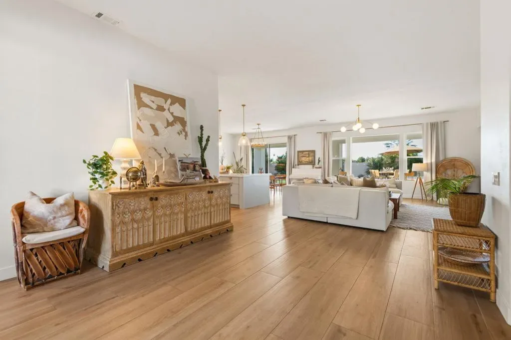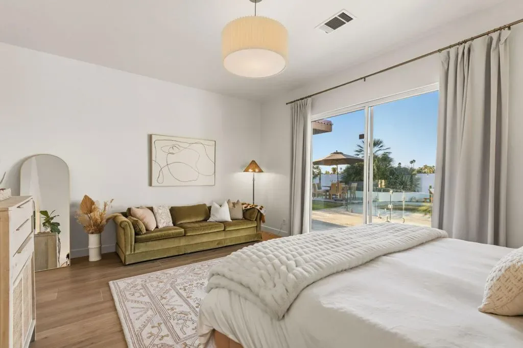 Experience a beautifully modernized residence showcasing exceptional upgrades and modern comfort throughout. Located in the highly desirable community of Canyon Crest, this home features 3 bedrooms plus an office/den that could serve as a fourth bedroom and comes fully furnished, offering a turnkey opportunity. At the heart of the home is a completely redesigned kitchen with high-end improvements, including all-new custom cabinetry, premium Quartz countertops, designer lighting, and a beautifully finished backsplash. Matching cabinetry extends into the living room to create custom built-in shelving and a media center. Comfort and efficiency are maximized with two brand-new AC units, a $24,000 upgrade ensuring year-round climate control and fully owned solar for energy savings.The home continues to impress with all-new flooring, fresh interior paint, updated baseboards, and new faucets and fixtures. Updated windows bring in natural light, and a custom glass pool enclosure adds style and function. Nearly $150K in upgrades have been completed over the past two years. The backyard features a pool with beach entry, raised spa, grassy area, vegetable gardens, desert landscaping, and a covered patio with mountain views and a built-in outdoor BBQ.
