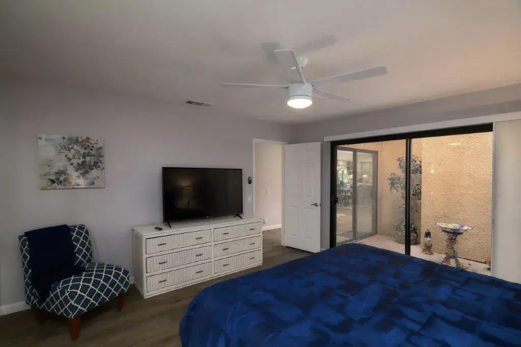 This premier view home provides prime lake and golf-course location with spectacular panoramic views of the San Jacinto Mountains and the lake and green of the 13th hole. This is Chaparral’s largest model with 3-bedrooms and 3-bathrooms. It has been totally remodelled throughout. The gorgeous kitchen provides a beautiful island with a massive picture window and new top line appliances. All 3 bathrooms have been renovated providing a spa like experience. The patio has been extended and a privacy wall installed. Enjoy viewing the snowcapped mountains from your extended patio with privacy wall while you enjoy your morning coffee and watch the golfers go by. Located in the heart of Palm Desert, Chaparral offers 18 holes of challenging golf, 21 Pools & Spas, Tennis, Pickle-ball, a fully equipped Fitness room, Activity center with pool and card tables and a remodeled Clubhouse with world-class dining and Entertainment. Unit booked for 2026 season. Owner pays baseline of first $175 of monthly gas and electric bills. Tenant to pay any amount over baseline.