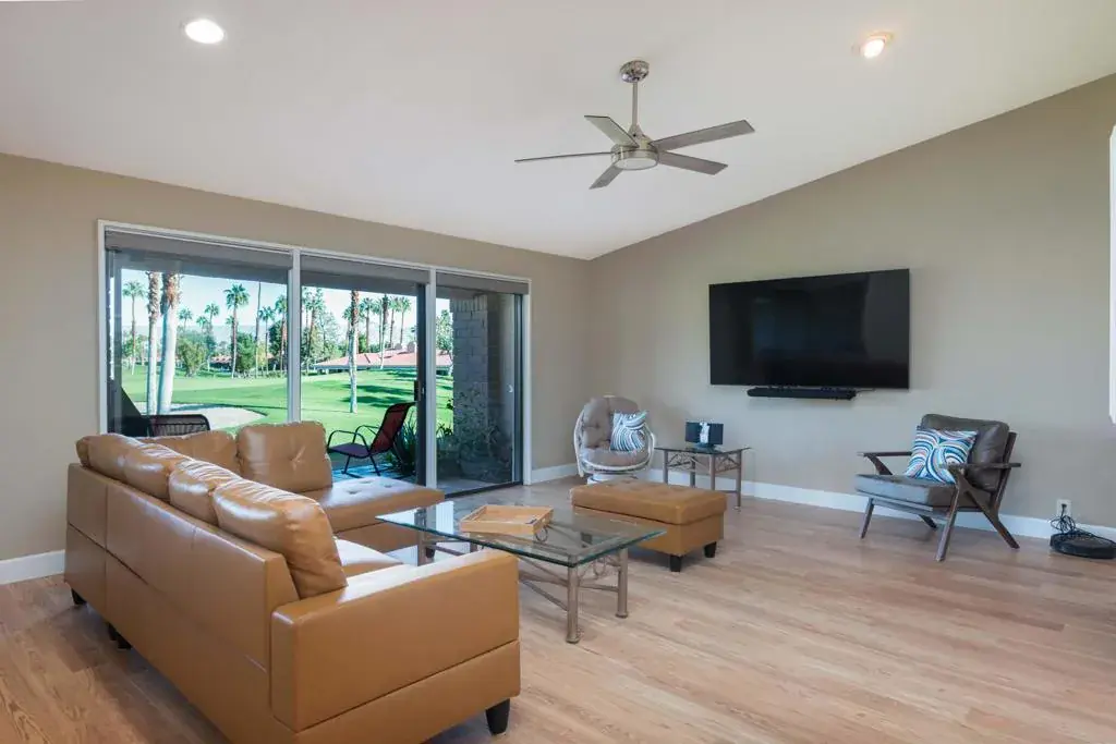 Welcome to your new home at Chaparral Country Club, where vacation style living meets everyday comfort. This fully furnished 3BD/2BA Del Prado Model features a move-in-ready interior and sits on an elevated lot with stunning views of the beautiful Ted Robinson designed golf course and the sweeping vistas of the Little San Bernardino Mountains. Enjoy a spacious two-car garage and a very convenient attached golf cart garage (a $60K upgrade). Just steps away… the newly renovated clubhouse offers fine dining, a state-of-the-art fitness center, and courts for tennis, pickleball, and bocce ball. With 21 pools and spas, relaxation is always within reach. Located minutes from El Paseo’s boutique shopping, dining, and top-tier medical care, this home offers both luxury and convenience. Also, enjoy the recently upgraded Pergo ‘no worry’ flooring throughout the main living areas as well as a new tankless hot water heater system. HOA fees cover all amenities except golf, which is available at reasonable rates. Don’t miss this incredible opportunity–experience the best of Palm Desert living NOW!