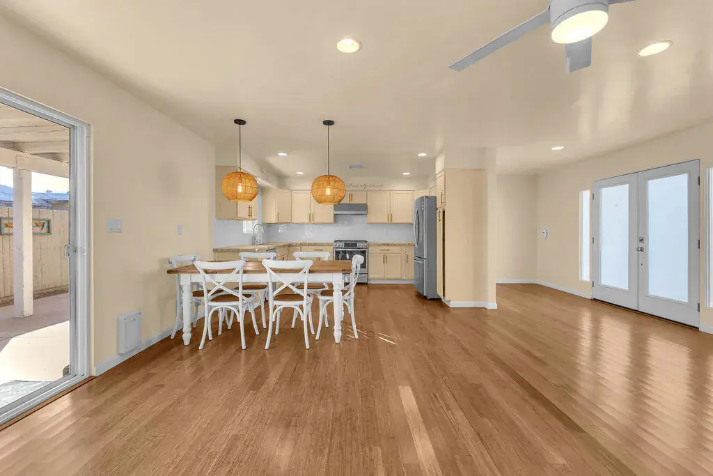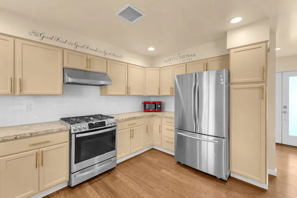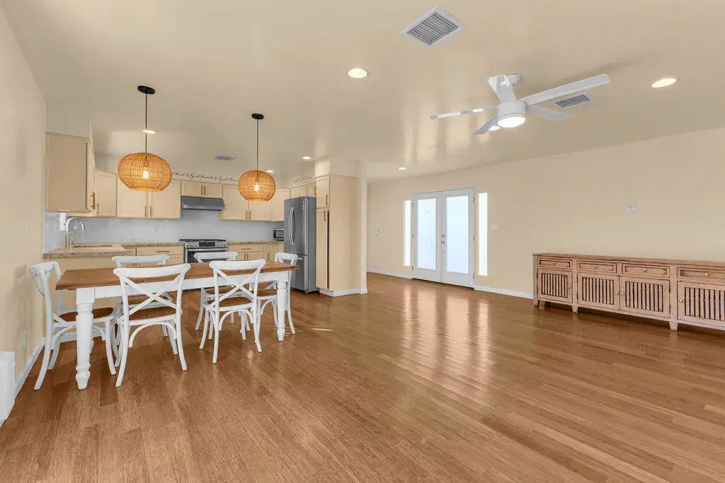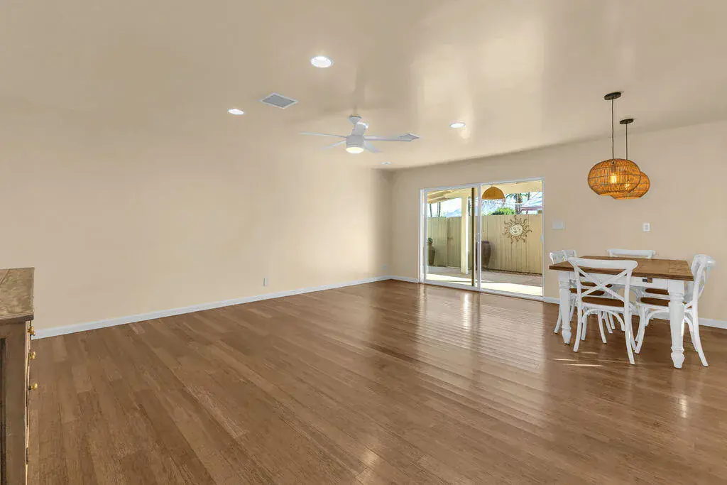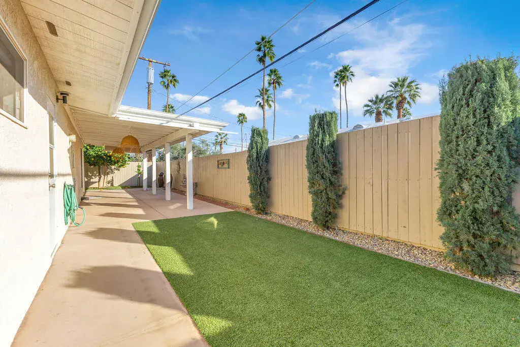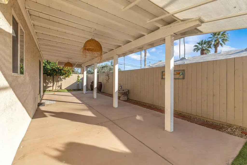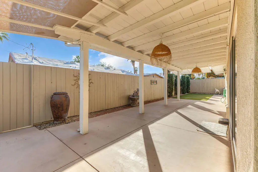 Available for lease in an amazing central Palm Desert location just steps from the community pool. This beautifully updated 3 bedroom, 2 bathroom home offers an open and airy floorplan with wood-like flooring throughout and a seamless flow for everyday living. The kitchen has been refreshed with stainless steel appliances and modern finishes, while both bathrooms have been tastefully updated. Enjoy a private enclosed and covered backyard with mature fruit trees, perfect for relaxing or entertaining. Additional highlights include a spacious two-car garage with abundant storage, an extra refrigerator, and a newer washer and dryer. Convenient, comfortable, and move-in ready, this home offers the ideal desert lifestyle.