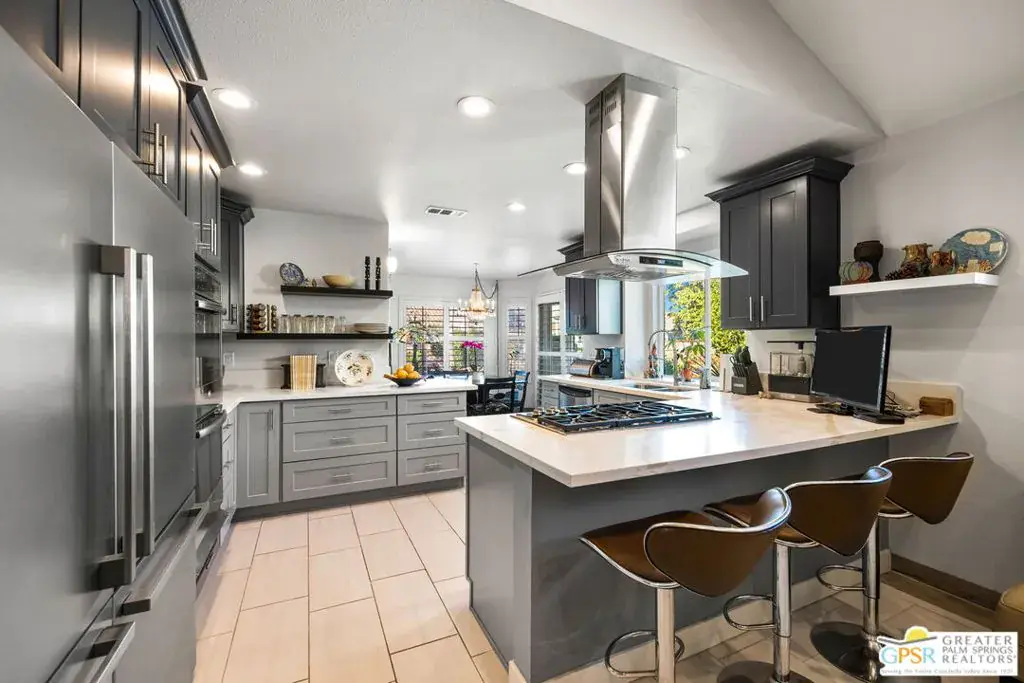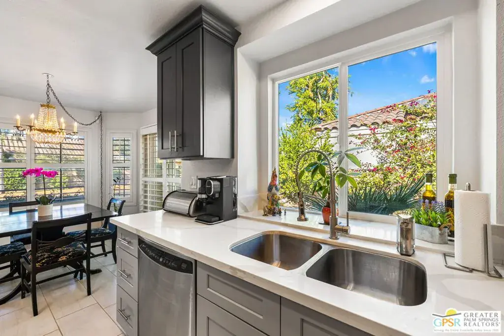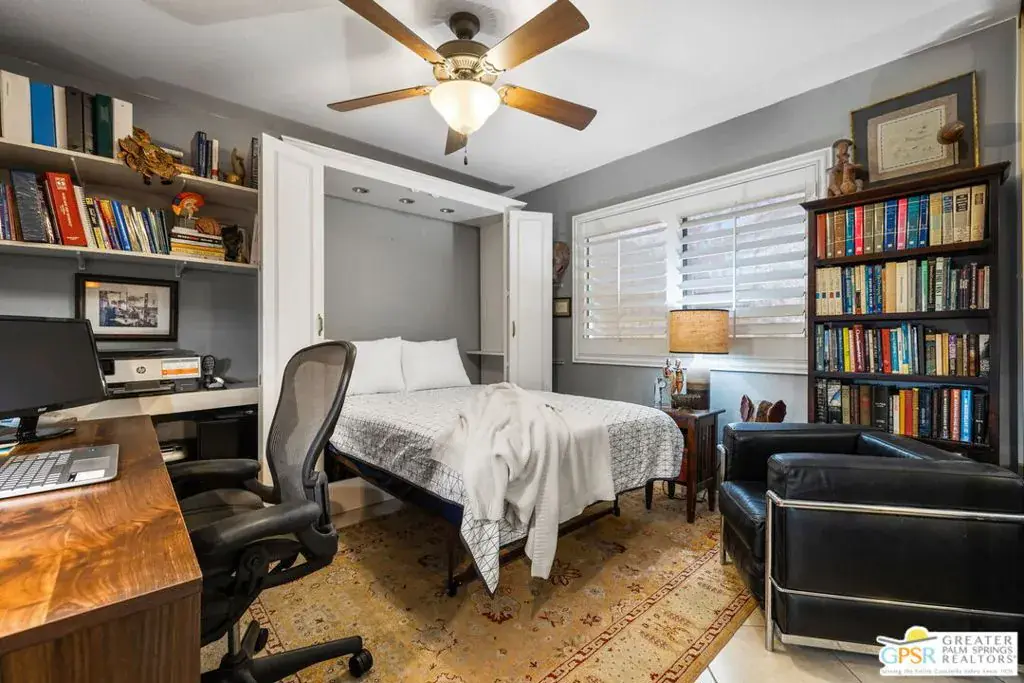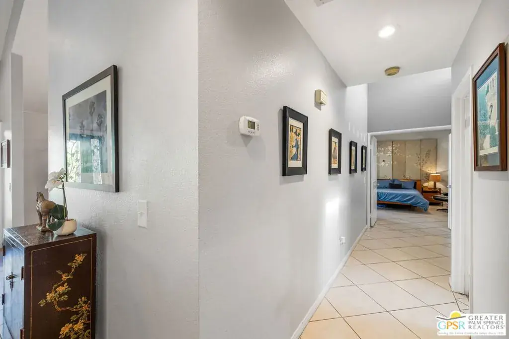 This beautifully renovated 3-bedroom, 2-bathroom home is located in the highly desirable Desert Breezes Resort and offers 1,839 sq. ft. of thoughtfully designed living space. Extensive renovations completed in 2022 include updated sliders, a gourmet kitchen, upgraded bathrooms, stylish flooring, a private patio with tranquil waterfalls, an outdoor shower, a convenient wash station for pets, and a luxurious private spool. The backyard is a true private retreat, ideal for both relaxation and entertaining, enhanced by lush landscaping and soothing water features. Recent improvements by the current owners include brand-new sliders in the primary and guest bedrooms, a beautifully updated primary bathroom, a private patio off the guest room, an upgraded sprinkler system, a raised back wall for added privacy, enhanced ductwork, a striking upgraded fireplace, an alarm system, and modern landscape lighting. Ideally situated across from the world-class PNB tennis stadium – A Must See!