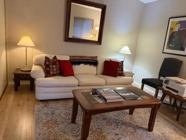 Seasonal monthly rental in Desert Falls Country Club. Guests have access to the sports club, clubhouse, bar & restaurant & spa & tennis courts. Very spacious 3 bedroom & 2 1/2 bath condo with vaulted ceilings. Very new furnishings in living room, dining room & primary bedroom as well as new flooring, brand new Stainless Steel appliances. King bed in primary bedroom, Queen bed in guest bedroom. Sofa beds in living room & 3rd bed/den/office. Very well stocked eat-in kitchen with every small appliance you might need. Large pantry, spacious kitchen with lots of counter space for serving big gatherings. Views from both patios. Back patio overlooks the pool & spa. Front patio looks West over the mountains. All NEW patio furniture on both decks. The back deck overlooks the pool & spa. Various citrus trees & a parklike setting surround the pool & spa. Condo is close to shopping, Ralph’s grocery store and many well know restaurants are just across the street on Country Club & Cook. Marriott Desert Springs Resort is adjacent to the complex. Golf is available on a ”pay as you play” basis. Four bicycles are for guests’ use. Plenty of pool toys also available.Great location to attend all the music festivals and the BNP Paribas tennis tournament as well many golf courses within a 10 minute drive. Close to the I-10 freeway, Eisenhower Medical Center and El Paseo Drive shopping.Booked January 15 through February 28, 2026. All other months available.