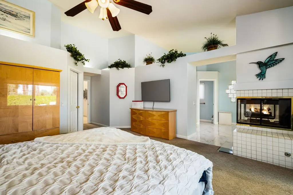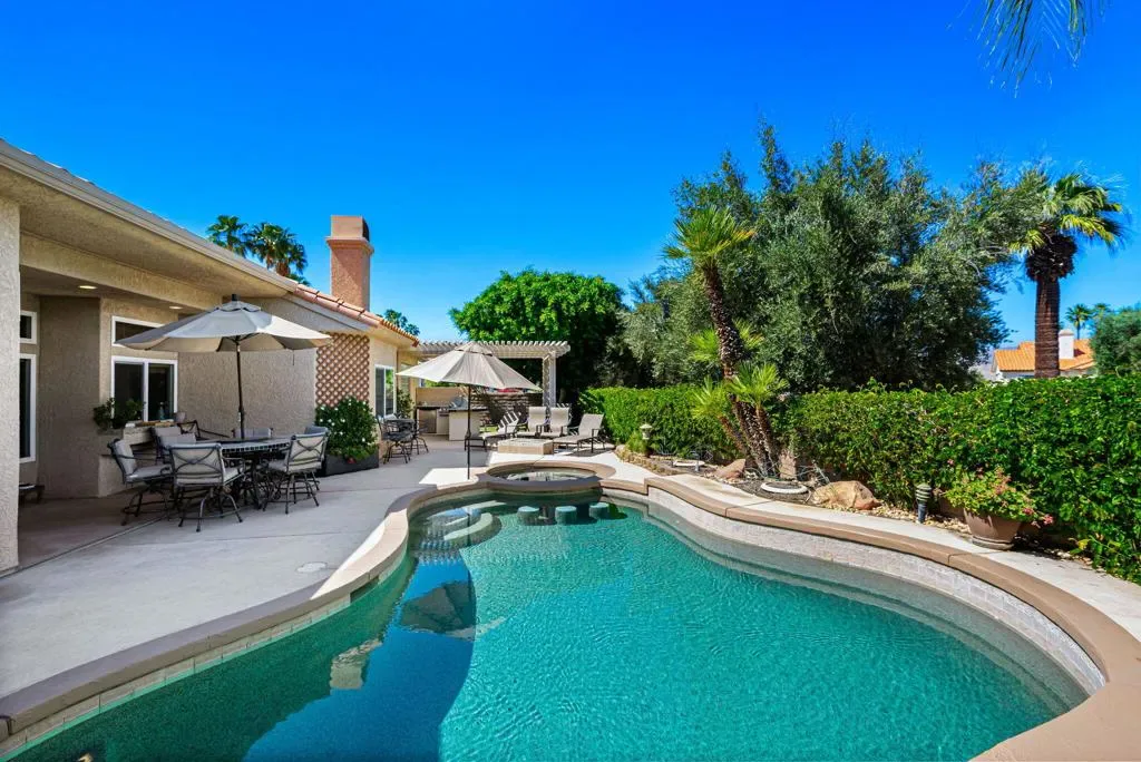 This Absolutely Beautiful, Country Club Resort Pool Home is Move-in-Ready for you to add your own personal touches and call Home! Boasting 4 Bedrooms and 3 upgraded Bathrooms, perfectly spread out over a 2300 sq ft single level floor plan with soaring Cathedral Ceilings allowing light and energy to fill the home! The entire home is fitted with New Milgard Windows and Doors, Plantation Shutters and Custom Window Coverings. The home is spacious and designed for comfort and relaxation with both a Formal Living Room and a TV Family room, 3 Fireplaces and an Updated Kitchen with beautiful Cabinetry and Granite Counter Tops. A 25 Panel Fully Owned and Paid for Solar System keeps the utility bills to a minimum, and 24 Kw back-up Generator allows for peace of mind. Step outside to an incredible Entertainers Back yard, complete with Cool Decking, Pebble-Tec Saltwater Pool and Spa, Outdoor Built in BBQ Station with Aluma-wood Covering, Dining area, Relaxation area around the Firepit and additional private space on either side of the home for children to run and play, or pets to enjoy, or use however you wish. Maybe turn one side into your private short game putting green or Outdoor Games area/Yoga Zen or Rose Garden. Desert Falls Country Club HOA Dues are considered one of the Very Best Values in the Desert with Cable, Wi-Fi, 24/7 Guarded Gates and Roving Security, Grounds and Landscaping maintenance, 29+ Pools and Spas, Tennis & Pickleball Courts, Fitness Center, Clubhouse and Restaurant all included in your dues.Desert Falls Scottish Links Championship Golf Course is rated as one of the top 10 courses by the SCPGA and awarded a 4 -star rating from Golf Digests ”Best Places to Play”! You can choose to purchase a membership or pay as you play. So don’t miss out on this Beautiful, meticulously maintained, single level, single family detached Home located in ”The Links” a prestigious enclave within the grounds of Desert Falls Country Club your new Desert Resort Home. It truly is a Gem of a find! Centrally located in the middle of the valley within walking distance to restaurants, shopping, Cal State and UC San Bernadino, and only a few miles to top entertainment venues such as Acrisure Arena, Agua Caliente Spa & Casino, the McCallum Theatre and El Paseo: a 2-mile boulevard of upscale Galleries, Boutiques, and fine Dining. This Move-in-Ready Home is not to be missed! Call Today for your private tour!