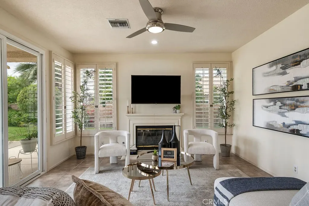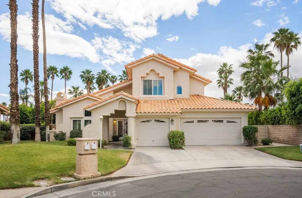 Set behind the private gates of Desert Falls Country Club’s coveted “The Links,” this stunning two story residence offers the perfect blend of elegance, comfort, and resort style living. Tucked away on a quiet cul-de-sac, the home welcomes you with soaring ceilings and an abundance of natural light that immediately creates an airy, inviting atmosphere. Thoughtfully designed for both everyday living and entertaining, the spacious floor plan features 4 bedrooms and 4.5 bathrooms, including a desirable main level bedroom with its own private bath, ideal for guests or multigenerational living. Upstairs, two additional en-suite bedrooms provide privacy and comfort, while the luxurious primary suite is a true retreat, complete with its own fireplace and private balcony, perfect for enjoying serene desert mornings or evening views. Three fireplaces throughout the home: located in the living room, family room, and primary suite, add warmth and sophistication to the living spaces. Recently remodeled bathrooms, newer windows and sliders, and dual A/C systems enhance both style and efficiency, making this home truly turnkey. Step outside to an expansive, oversized backyard designed for ultimate enjoyment. Whether hosting gatherings or relaxing in your own private oasis, you’ll love the sparkling pool and spa, full basketball court, lush grassy areas, and covered patio. Mature lemon and ruby red grapefruit trees add a charming touch, completing this exceptional outdoor space. Living in Desert Falls means access to a premier lifestyle centered around the renowned Desert Falls Scottish Links Championship Golf Course, recognized as one of the top 10 courses by the SCPGA and awarded a 4 star rating from Golf Digest’s “Best Places to Play.” Enjoy a flexible pay-as-you-play option along with world class amenities including tennis, pickleball, a fitness center, clubhouse dining, and 32 community pools and spas. Ideally located in the heart of the Coachella Valley, you’re just moments from shopping, dining, and entertainment, including Acrisure Arena, Agua Caliente Casino Resort Spa, McCallum Theatre, and the iconic El Paseo, a vibrant two mile stretch of luxury boutiques, galleries, and fine dining.