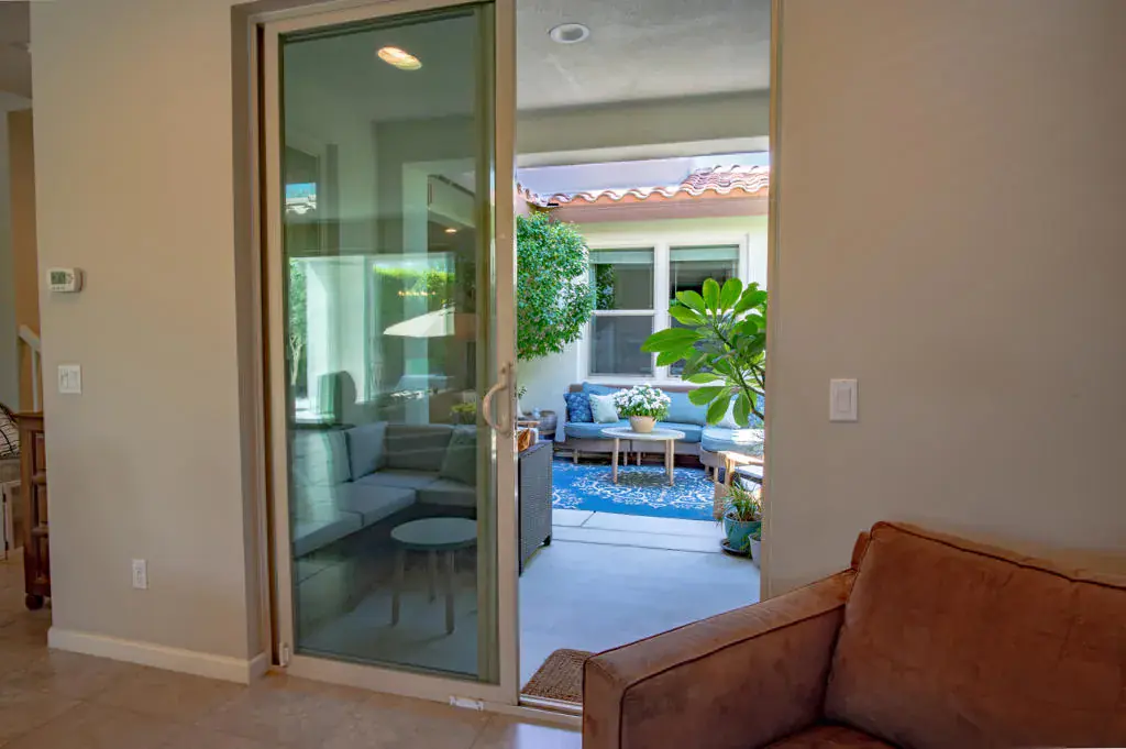Fabulous seasonal retreat in Genesis Palm Desert now available for lease — offered for both short-term and long-term stays. Experience modern desert living at its finest in this stunning two-story home, perfectly situated on a quiet cul-de-sac within the highly sought-after gated community of Genesis in Palm Desert. Designed for comfort and style, this home features soaring 9-foot ceilings, expansive windows that fill each space with natural light, and captivating mountain and community views. Offering 4 bedrooms and 3.5 baths, including a detached casita ideal for guests, a private office, or an artist’s studio, this residence effortlessly blends sophistication with livability. Interior highlights include elegant tile and wood flooring, plush Karastan carpeting, and a convenient upstairs laundry room. The spacious living room is designed for entertainment with an 85” television, tower speakers, and fiber optic high-speed internet. Smart home technology and a state-of-the-art security system provide added ease and peace of mind. The chef’s kitchen is a true showpiece, featuring sleek quartz countertops, stainless steel appliances, and a generous pantry–perfect for everyday living or hosting in style. The primary suite offers a private sanctuary with a spacious walk-in closet, a luxurious glass and tile shower, an oversized soaking tub, and a dual-sink vanity. Step outside and embrace the best of indoor/outdoor living. The serene front courtyard welcomes you with lush landscaping and a tranquil fountain, while the backyard oasis invites relaxation with mature privacy hedges, a heated saltwater pebble tech pool, and an oversized 12-foot spa–perfect for evening stargazing. Entertain effortlessly at the built-in BBQ area, complete with a sink, refrigerator, and ambient string lighting woven through the hedges for a true resort-like ambiance. Residents of Genesis Palm Desert enjoy exclusive access to two community parks, a pool, and a fitness center with BBQ and social areas–all just minutes from premier golf, tennis, pickleball, shopping, and dining. Convenient access to the I-10 ensures easy travel throughout the desert. Included in Rent: Water, pool service (2x weekly), landscaping, internet, Direct TV, pest control, and trash service.Tenant Pays: Electric and gas. Application Requirement: All tenants are required to complete a RentSpree credit application.