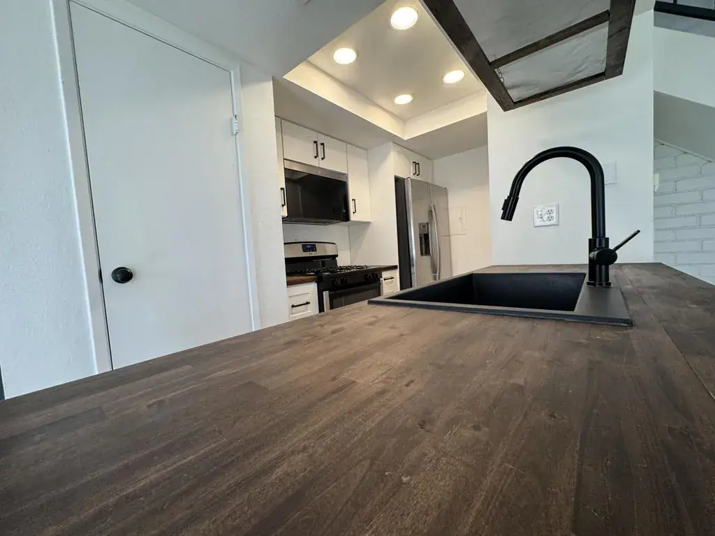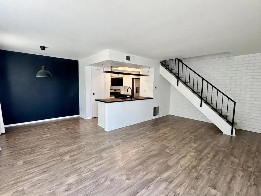 Welcome to this stylishly updated 2-bedroom, 1-bath condo located in the heart of Palm Desert in the desirable community of Indian Creek Villas! This modern two-story home features sleek wood-style flooring throughout, a freshly remodeled kitchen with stainless steel appliances, black fixtures, and warm butcher-block countertops. The open-concept living area is highlighted by a striking white brick accent wall and contemporary staircase railing, offering a perfect blend of comfort and character.Enjoy mountain views and easy access to local hiking trails just steps from your front door. Upstairs you’ll find two spacious bedrooms, each with ceiling fans and ample natural light. The shared garage and on-site laundry add convenience to everyday living.Perfectly situated near shopping, dining, and outdoor recreation — this home is ideal for those seeking a clean, modern space in a prime Palm Desert location.