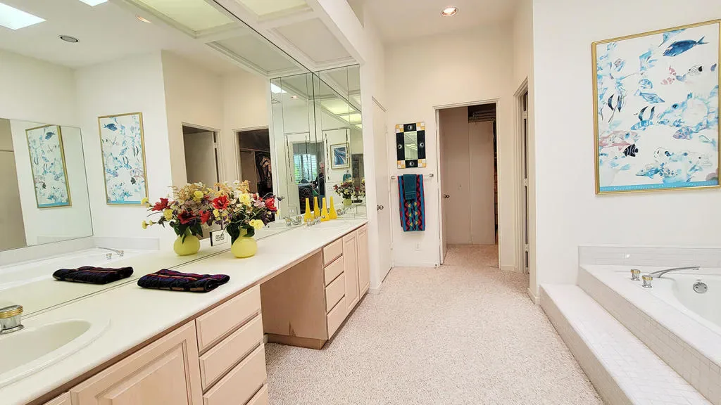This home has a fantastic view. It could use some updated personal touches of a new owner and is the reason we’re the lowest priced 3 bedroom in Indian Ridge. It’s a 3 bed, 4 bath, 2,182 sq. ft. home offering high ceilings, new appliances, spacious rooms, and move-in ready comfort that’s provided 20+ years of pleasure to its’ previous owners. Enjoy breathtaking views of the golf course, mountains, and lakes–every window is a scenic moment. Just treat this home as your personal pallet and remake it into a special place, again.Indian Ridge social membership provides a vibrant social calendar, interest clubs, and a friendly, active community, Indian Ridge is perfect for those seeking both luxury and connection. The beautifully landscaped grounds and pet-friendly environment only add to its appeal.If you’re looking for full-time living or a seasonal escape, this is more than a home–it’s a lifestyle opportunity. Come enjoy the best of Palm Desert living, where every day feels like a vacation.