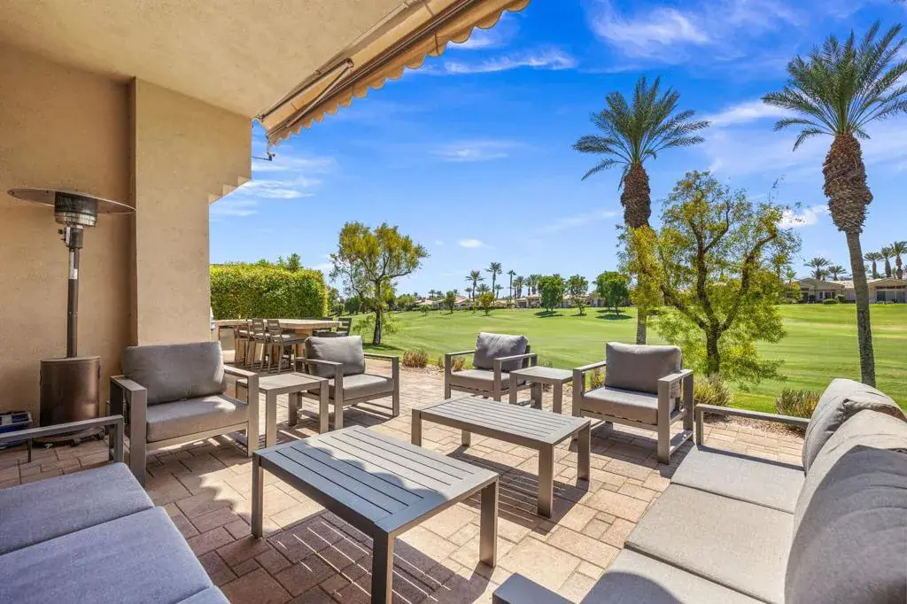 Welcome to this stunning Acacia 5 floor plan with provisional golf membership, completely remodeled from top to bottom and offering the best in modern desert living. Step inside to find all new luxury vinyl flooring throughout, a beautifully redesigned kitchen featuring granite countertops and brand-new appliances. The primary suite is a true retreat with a gorgeous walk-in shower, separate soaking tub, modern dual sinks and 2 mirrors with LED lighting. Each guest bedroom offers its own private ensuite bathroom, all fully updated with new showers, countertops, and fixtures–perfect for hosting family and friends in comfort. Outside, the front courtyard and back patio are both finished with elegant pavers, while the built-in BBQ and extended back patio create the ideal setting for entertaining. Enjoy spectacular southern mountain views overlooking the 7th hole of the Grove course, a picture-perfect backdrop for every desert evening. Let’s not forget newer A/C systems, including garage AC, water heater, and epoxy garage floor. This home blends timeless style, comfort, and an unbeatable location–truly move-in ready and waiting for you! This home is being offered furnished with very few exclusions.