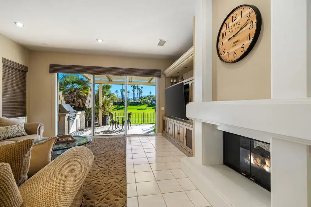 South Golf and Mountain Views! Currently the lowest-priced 4-bedroom home in Indian Ridge Country Club! Located on an interior cul-de-sac, this Smoketree 5 model offers 3,562 sq.ft. of elegant living space with four ensuite bedrooms and panoramic southern mountain and course views of Grove #4 of this Arnold Palmer Signature Golf Course. Club Membership available to Buyer with no wait (Golf Memberships are available via waitlist). The south-facing patio provides a covered outdoor area, built-in BBQ & private spa – perfect for entertaining or relaxing. A separate patio with a tranquil fountain is accessible from both the primary suite and a guest suite, creating multiple outdoor retreats. Inside, the living, family, and dining rooms all open to the patio – soaring ceilings with clerestory windows fill the living space with natural light and frame the stunning golf course views! Enjoy a dual-sided fireplace, custom built-ins, and a wet bar adjacent to the dining room for effortless entertaining. The kitchen features light cabinetry, granite countertops, a large center island, and a counter bar with seating that flows seamlessly into the family room with direct patio access. The primary suite is a true retreat with a generous sitting area, dual closets (including a spacious walk-in), and a spa-inspired ensuite bathroom with dual vanities, soaking tub, and separate shower. Each of the three guest bedrooms includes a private ensuite bath, ensuring comfort and privacy for family and guests. Attached 2-car garage plus golf cart space with direct home access. The home is conveniently located just a few houses from one of Indian Ridge’s many community pools and spas, and near ”Rover’s Ridge”, IRCC’s private dog park. HOA monthly dues include security, cable & internet, all gardening, exterior paint, roof maintenance, exterior water, exterior pest control and trash. Indian Ridge CC features two Arnold Palmer Signature golf courses, tennis/ pickleball facilities, a fitness center, a full-service spa, two restaurants, 38 community pools/spas & active social calendar. Come Join the Fun!