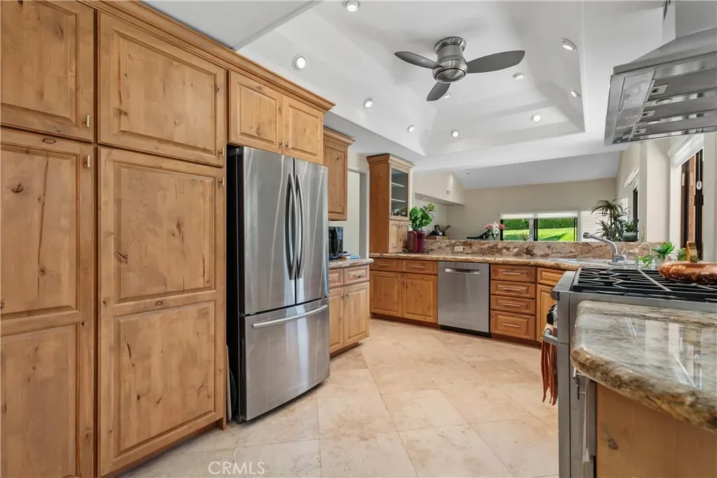 Inside, the expansive gourmet kitchen serves as the heart of the home, featuring sleek granite counter tops and premium appliances, including a Dacor range. The kitchen flows seamlessly into generous dining and gathering spaces ideal for entertaining. Two inviting living areas add warmth and character—one anchored by a striking stacked-stone fireplace, the other by an elegant granite fireplace—while walls of glass frame picturesque vistas and bathe the interiors in natural light.