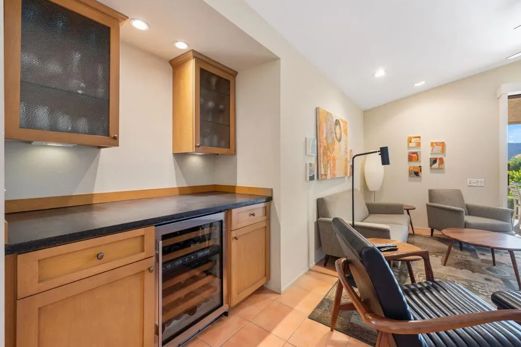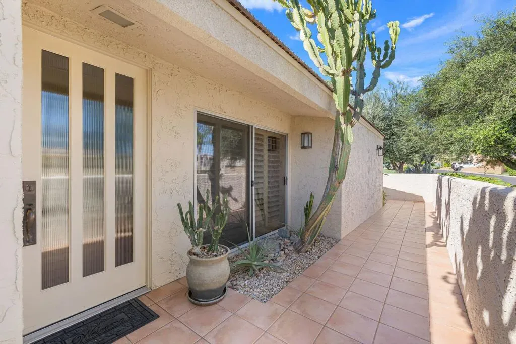 Great mountain views from this corner elevated lot. Charming 2-bedroom 2-bath open floorplan. Tile flooring, plantation shutters and attached garage. Custom kitchen with Subzero fridge, Wolf stove/oven and mircrowave. Separate laundry room / pantry. Enjoy sounds of outdoor fountain in courtyard off of the kitchen Baths are updated with jacuzzi tub / shower in primary and walk-in tile shower in guest bath.The wrap-around patio has been expanded to enhance outdoor enjoyment. with great views & privacy. Ironwood is a private member-owned golf community. Memberships available. Use of facilities is separate from home ownership.