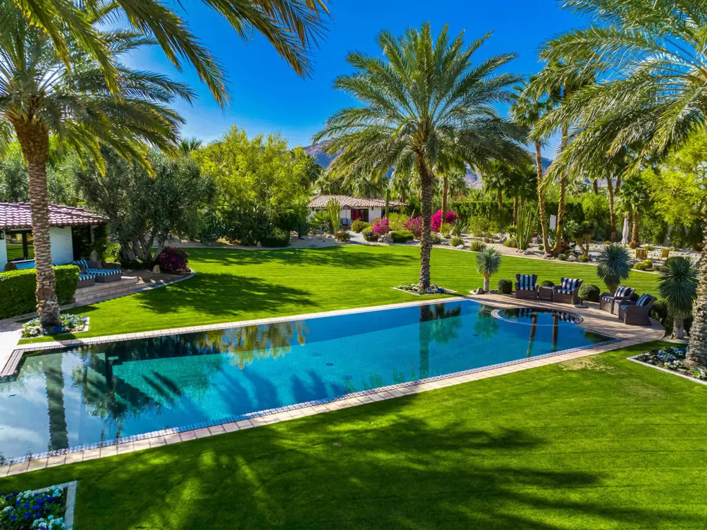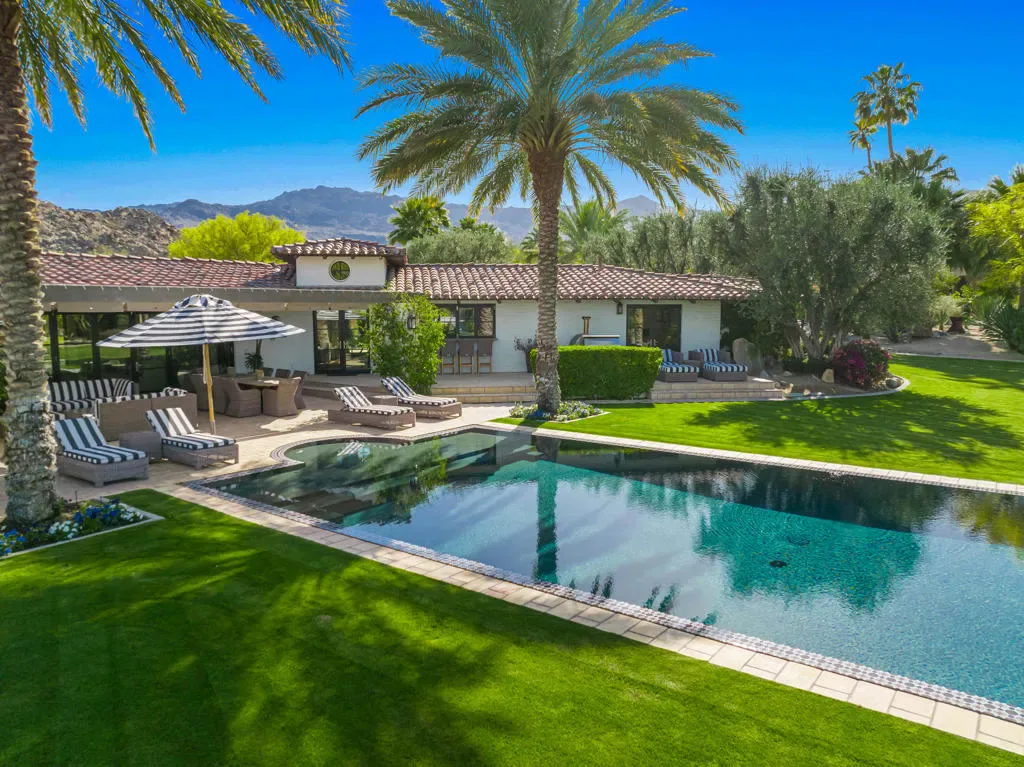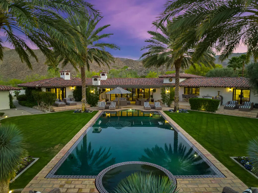Nestled within the exclusive enclave of Ironwood Country Club, this down to the studs renovated and fully furnished estate offers a rare opportunity to own a piece of history. Once the esteemed Bing Crosby estate, this remarkable property spans an expansive 2.53 acres, boasting unparalleled privacy and mature landscaping.This elegant residence presents 5 bedrooms and 7 bathrooms throughout the main house and includes 3 casitas, providing ample space for luxurious living and entertaining. The interior exudes timeless sophistication, with meticulous attention to detail evident throughout. A seamless blend of modern amenities and classic charm creates an inviting ambiance in every corner. For entertaining, the home includes an electronic Lutron Lighting. system, an ice maker and beer keg in the bar, and a warming drawer and a Miele Expresso machine in the kitchen. The property also includes whole house water filtration.Outdoor indulgence awaits on the grounds, featuring a lighted tennis court and bocce ball court, offering endless opportunities for recreation and leisure. The estate is also equipped with solar panels, ensuring energy efficiency without compromising on luxury.With its rich history and unparalleled privacy, this property offers a rare chance to experience the epitome of desert living. Whether hosting grand events or enjoying serene moments of solitude, this estate embodies the essence of refined living in one of California’s most coveted locations. Live the legacy of Bing Crosby in this extraordinary retreat.