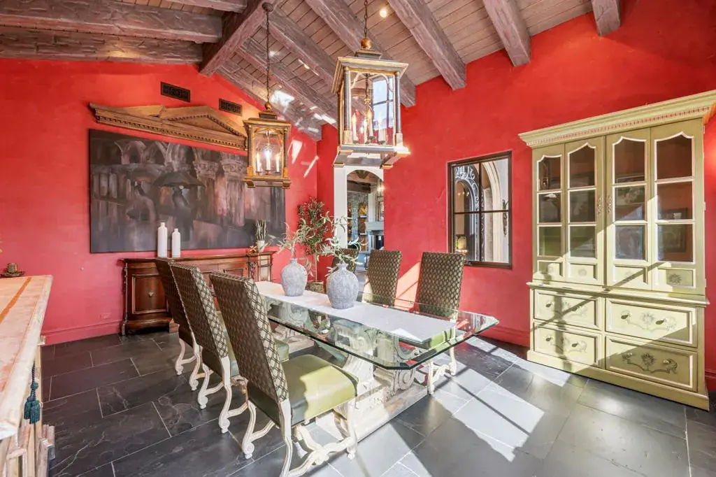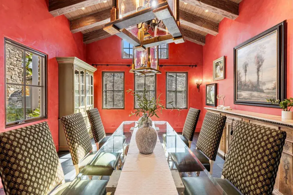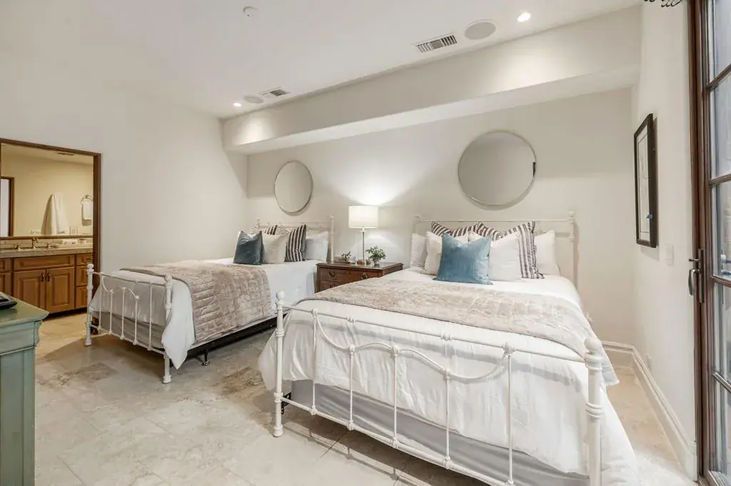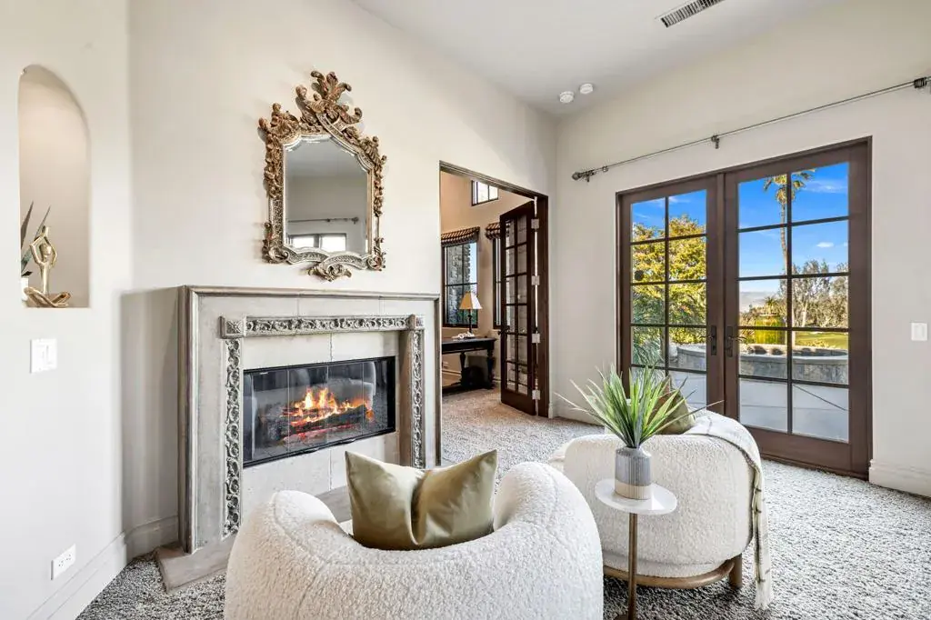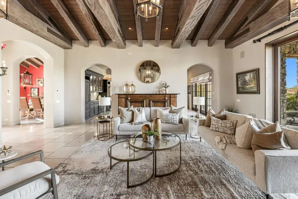 An Artist owned and inspired the design of this classic, timelessly elegant view home. This estate home has a European elegance and sophisticated feeling throughout. The views are stunning as the home sits on a premium elevated lot with 180 degree views of the Ironwood Country Club’s golf course & the mountains. It built with superior quality by Cherokee homes with their customary attention to every detail. Enter through the private gate into a courtyard with a charming fountain. The formal entry leads to the gourmet kitchen. Perfect for a great cook and for entertaining family and friends, the kitchen has a solid marble farmhouse sink, honed granite island, granite slab countertops, breakfast bar, top of the line Subzero, Wolf and Bosch appliances, a pantry & great light. There is a wine room, artist’s studio, & breakfast room. The family, living & formal dining rooms have high, hand-distressed wooden beamed ceilings. Venetian plastered walls decorate the spacious & elegant formal dining room. The doors in the main house are 8 foot solid wood. The floors are slate, hand chiseled limestone & carpeted. Tall Weiland sliders disappear into the walls of the huge living room & open to the covered patio, infinity pool, spa & the sweeping views. The main house has two bedrooms with ensuite baths. Antique doors open to the primary bedroom with its cozy fireplace, & adjoining private office. French doors lead from the primary bedroom to the spa. The guest bedroom has an office area & doors that open to a private patio. Enter the charming two bedroom, two bath private casita from the front courtyard. The main house is all one level. The Casita has a main level living area and lower level with two ensuite bedrooms and a private patio. The ground level of the Casita has a great room, kitchen, powder room and laundry with wood engineered & travertine floors. The driveway leads to the 2 car golf cart garage, directly across from the oversized 2 car garage. The exterior of the home was recently painted.This home is a timeless classic. It has privacy and a warm & inviting ambiance. Shown by appointment, easy to show.