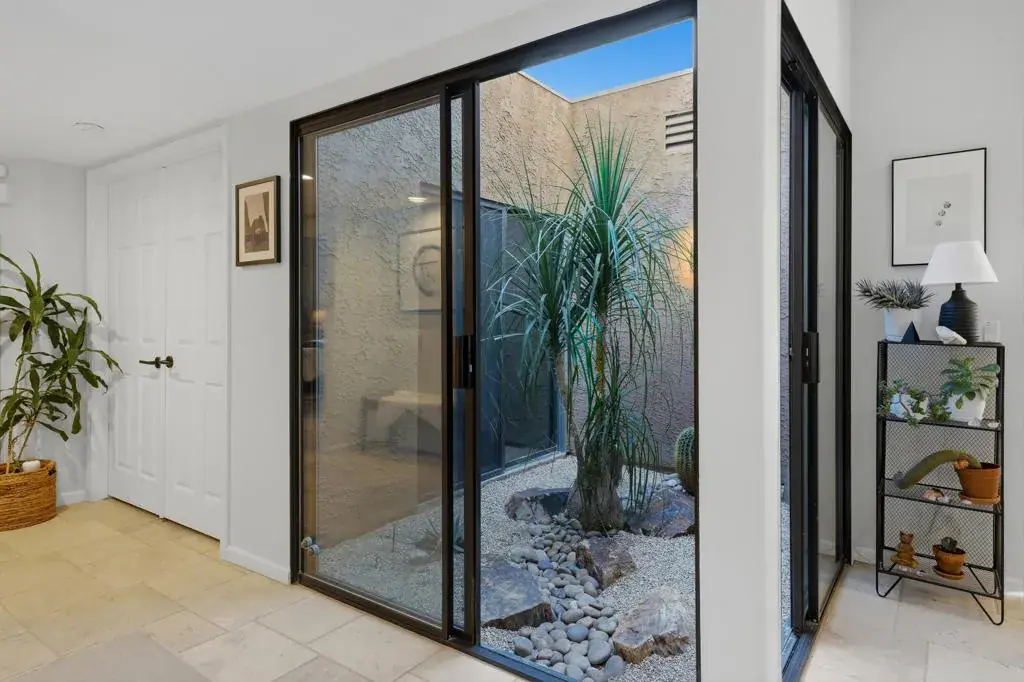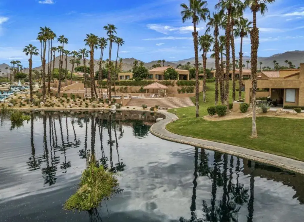 Picture a shimmering lake nestled in the heart of the desert. It is not an illusion, but one of Ironwood’s most coveted treasures, rarely available and ready for you to claim. This fully remodeled two-bedroom, two-bath retreat boasts sweeping lake vistas and breathtaking mountain views from the master suite. Step onto the extended patio, where you can soak in the scenery or unwind in your private jacuzzi. Inside, a tranquil, zen-inspired ambiance welcomes you, perfectly capturing the relaxed spirit of desert living. Expansive green spaces stretch beyond your windows, creating a sense of openness and freedom. Every detail has been thoughtfully upgraded, from elegant tile floors and gleaming granite countertops to custom cabinetry, modern appliances, and unique touches such as a stone-accented fireplace and a glass-block shower in the master bath. Additional upgrades include a complete home security system, automated blinds, a patio misting system for year-round comfort, a mini slit has been added to the garage, along with newly desertscaped landscaping and a serene atrium that brings natural light and architectural interest into the home. Sunlight pours through large windows and doors, illuminating the fresh, contemporary palette throughout. This home has been meticulously transformed with quality finishes at every turn. Make it yours and experience a lifestyle that exceeds expectations.