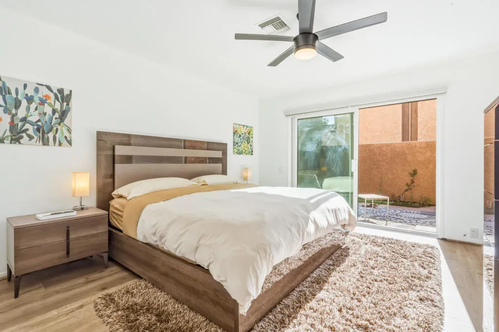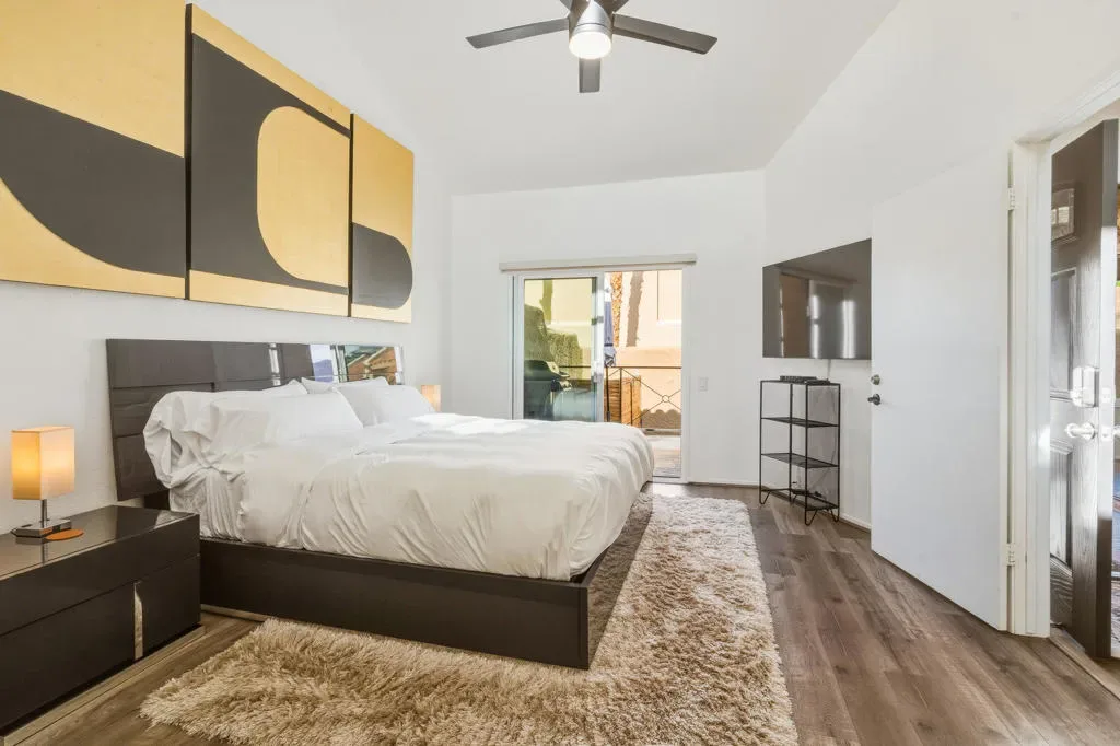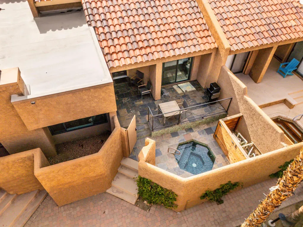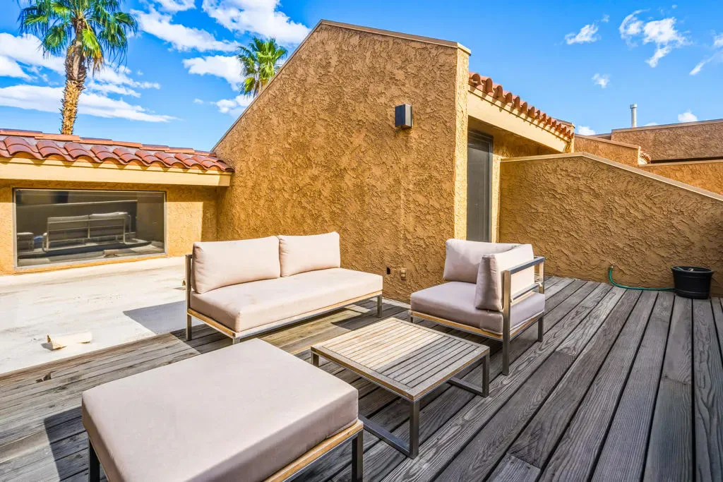 Step into a thoughtfully reimagined residence where every detail has been elevated to deliver both style and substance. This tastefully renovated home offers a seamless blend of modern sophistication and effortless comfort, truly setting it apart within the community of HOA 10, managed by Desert Resort Management.From the moment you enter, the quality of craftsmanship is evident. New dual-pane Milgard windows and doors invite in natural light while enhancing energy efficiency, complemented by sleek electric smart-home shades for privacy and ease. Fresh designer carpeting softens the staircase, closets, and expansive loft, while newly repainted ceilings highlight the striking architectural beam that spans the living space, creating both warmth and visual impact. Even the smallest details, from updated electrical finishes to the ECOBEE smart thermostat, reflect a home curated with intention.The kitchen has been beautifully refined to inspire. Cabinetry has been expertly refaced and elevated with under-cabinet lighting, while the removal of the drop ceiling enhances volume and openness. A Fisher & Paykel refrigerator anchors the space, delivering both function and a clean, contemporary aesthetic, perfect for everyday living and entertaining alike.Throughout the home, renovations continue with purpose and style. The secondary bathroom has been completely reimagined fully gutted and rebuilt with a sophisticated blend of new tile, vanity, shower, and fixtures. The primary suite offers its own sense of retreat, featuring dual vanities, updated finishes, and a fresh, refined palette.Outdoors, the attention to detail continues. A welcoming gated entry leads across newly installed slate tile, complemented by a beautifully tiled spa and custom iron railing, designed to enhance both safety and architectural appeal. Even the pool equipment has been thoughtfully enclosed with a custom built structure, a rare detail that speaks to the level of care invested throughout the property.The garage is equally impressive, featuring an epoxy-finished floor and abundant built-in storage offering both practicality and polish.There are three outdoor seating areas, perfect for chilling after a busy day of activities.Immaculately maintained and extensively upgraded, this home not only delivers on design but also offers a proven history of seasonal rental income, making it a smart investment as it is a beautiful place to live. Welcome Home.