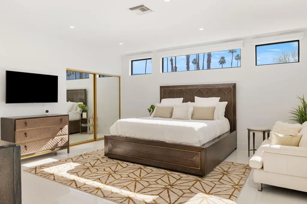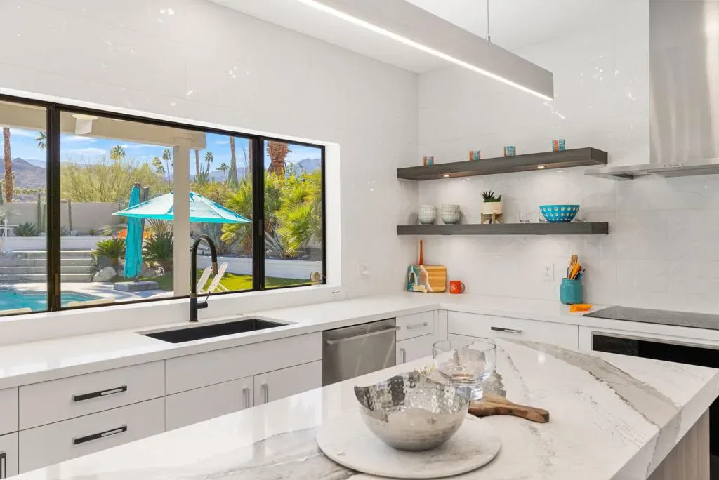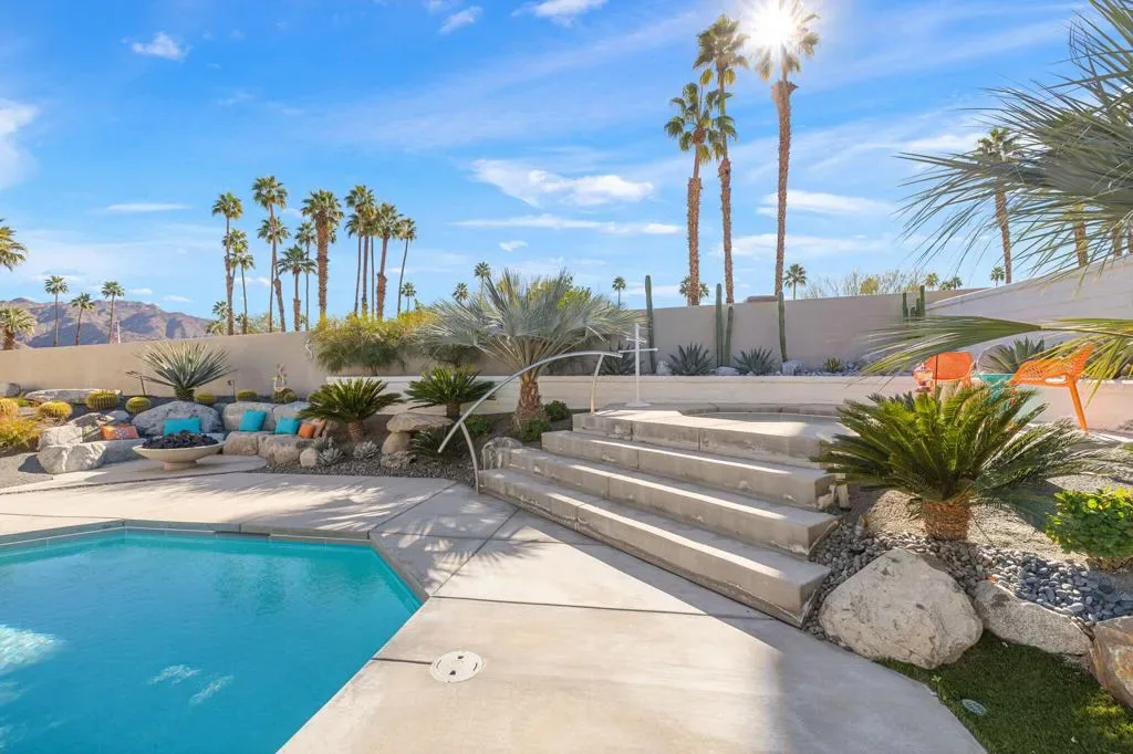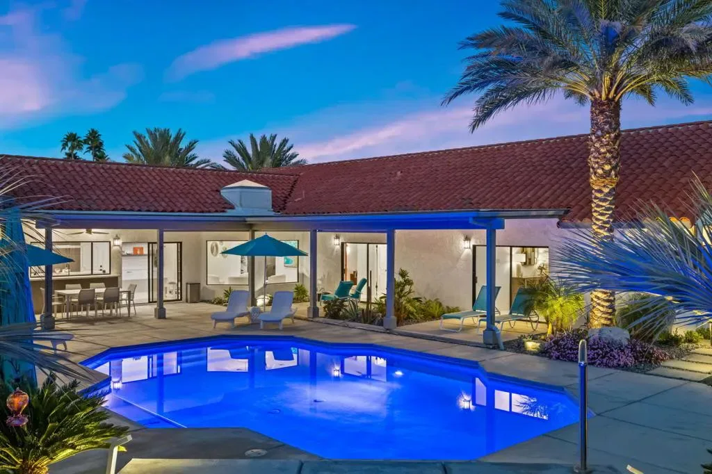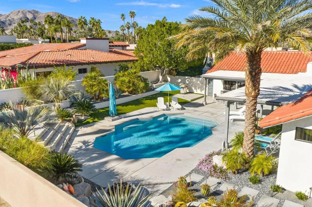 Desert Living – Luxury Redefined at a New PriceFURNISHED PER SELLER’S INVENTORY. Completely reimagined custom home with million-dollar panoramic views. This exceptional 3-bedroom, 3-bath residence with a den offers approximately 2,700 square feet of thoughtfully curated living space on an expansive one-third-acre lot.Designed for both comfort and sophistication, the home features generous proportions, elevated finishes, and seamless indoor-outdoor living rarely found at this level. Nearly everything has been updated since 2021, creating a true turnkey opportunity.The interior showcases new engineered wood flooring, new tile, freshly painted interiors and exterior, and all-new window treatments. Both secondary bathrooms have been completely remodeled, while the primary suite has been enhanced with new windows for improved comfort and energy efficiency. The kitchen has been fully renovated with custom cabinetry, quartz countertops, and top-of-the-line appliances, and is complemented by a new washer, dryer, and water softener.Major systems and exterior improvements have been comprehensively addressed. THE BACKYARD ALONE HAS UNDERGONE AN OVER $300,000 RENOVATION, INCLUDING A COMPLETELY REDONE POOL, ALL NEW CONCRETE, AND A FULL LANDSCAPE REDESIGN COMPLETED IN 2021. Additional concrete work extends throughout the property, with the entire side yard rebuilt in October 2025.Flat roofs were replaced in 2025, and the clay tile roof has been professionally inspected and confirmed to be in excellent condition. The water heater and furnace are both brand new as of 2025. Additional upgrades include all-new M-Tech door hardware, a new garage door, and epoxy-coated garage floors completed in 2021.Enjoy privacy, space, and breathtaking views in a well-maintained community with an exceptionally low HOA of just $267 per month. This is a rare opportunity to own a meticulously upgraded home that perfectly blends style, scale, and scenery.