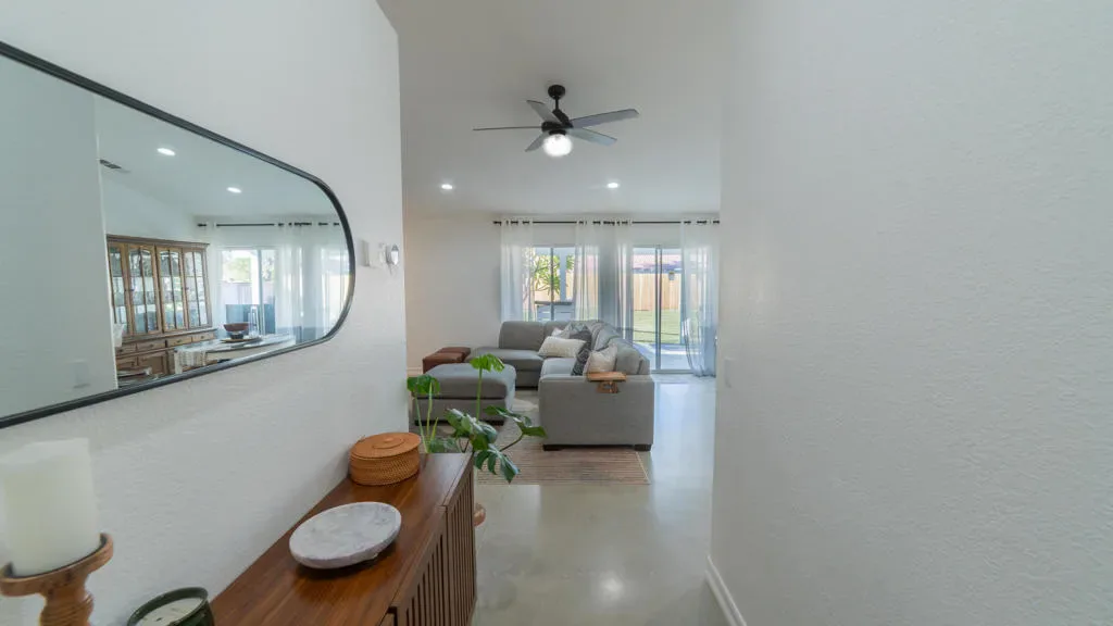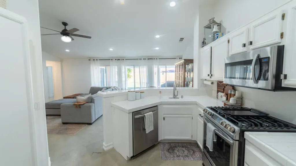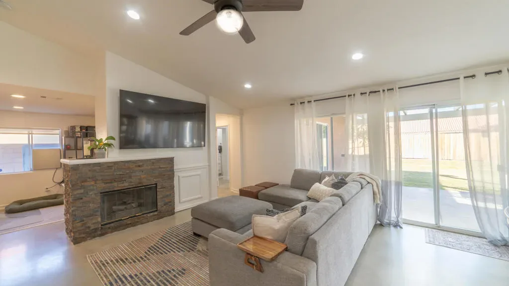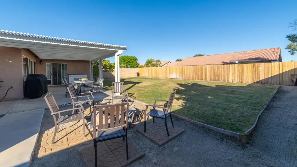 THE BEST VALUE IN PALM DESERT! SOLAR + ZERO HOA = UNMATCHED MONTHLY SAVINGS! Keep your home ice-cold all year for a fraction of the cost. Massive, private backyard is a blank canvas–perfect for your dream resort-style pool, a huge workshop or a high-income ADU/Casita. No restrictive HOA rules to hold you back! This is the freedom and luxury you’ve been waiting for. Presenting an exceptional opportunity to own a meticulously maintained home in a prime Palm Desert location, free from HOA fees. This single-story residence exudes curb appeal and features an inviting open-concept floor plan that is ideal for modern living. Comprising two spacious bedrooms, two bathrooms, and a versatile den that can serve as a third bedroom or office, this home is designed with both comfort and functionality in mind. The living area is highlighted by an elegant stack-stone fireplace and expansive windows that provide abundant natural light, complemented by a sliding glass door that offers seamless access to a generously sized covered patio, perfect for outdoor entertaining. The kitchen is bright and well-appointed, featuring stainless steel appliances, a newer microwave, an additional pantry for enhanced storage, and a convenient breakfast counter. The master suite is a tranquil retreat, complete with a walk-in closet and direct access to the backyard patio. Recent enhancements to the property include front yard landscaping, the installation of a mini-split air conditioning unit in the master bedroom, polished concrete flooring and recessed lighting throughout the home and garage. This residence stands as a prime example of updated desert living, combining style, comfort and practicality.The exterior of the property is equally impressive, showcasing beautifully designed desert landscaping, a charming front porch, and a private backyard that offers ample space for the addition of a pool. The attached garage is a standout feature, providing extensive storage options and a dedicated workbench.Please reach out to discuss this remarkable property further.