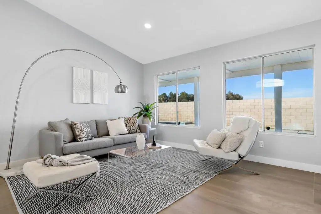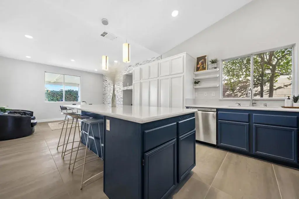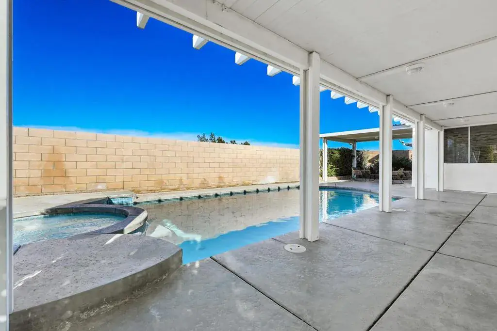 This newly remodeled 4-bedroom, 2-bathroom home combines modern style with everyday convenience. Inside, you’ll enjoy open, airy living spaces filled with natural light, a sleek kitchen with updated appliances, and tasteful finishes throughout.The backyard is your own private getaway, complete with a pool and spa–perfect for entertaining or unwinding under the desert sky. With solar panels installed, you’ll also benefit from energy efficiency and reduced utility costs.Best of all, this property is ideally located just minutes away from the Acrisure Arena, El Paseo’s upscale shops and restaurants, as well as top schools, parks, and local attractions. A rare opportunity to experience the modern desert lifestyle at its finest!